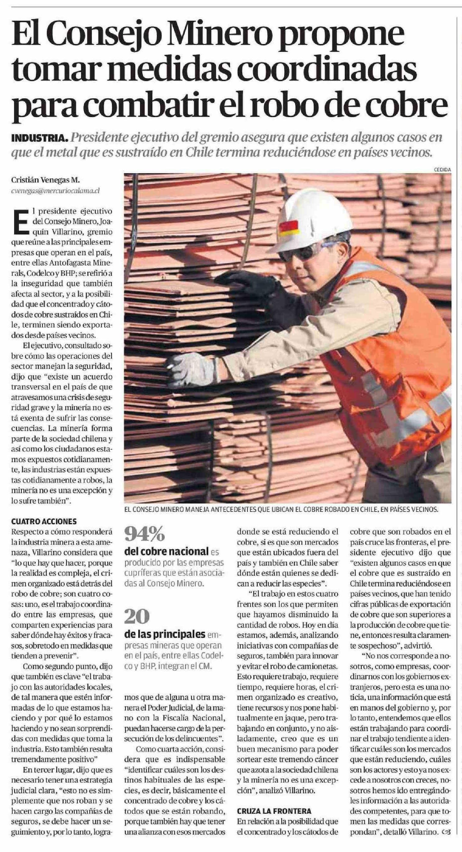 Título: El Consejo Minero propone tomar medidas coordinadas para combatir el robo de cobre