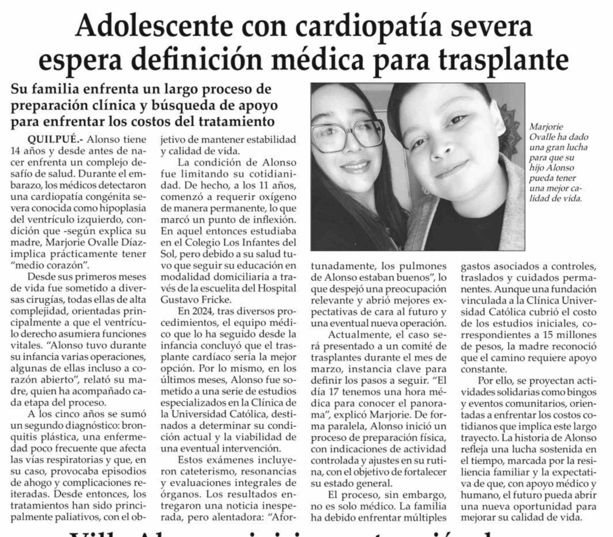 Título: Adolescente con cardiopatía severa espera definición médica para trasplante