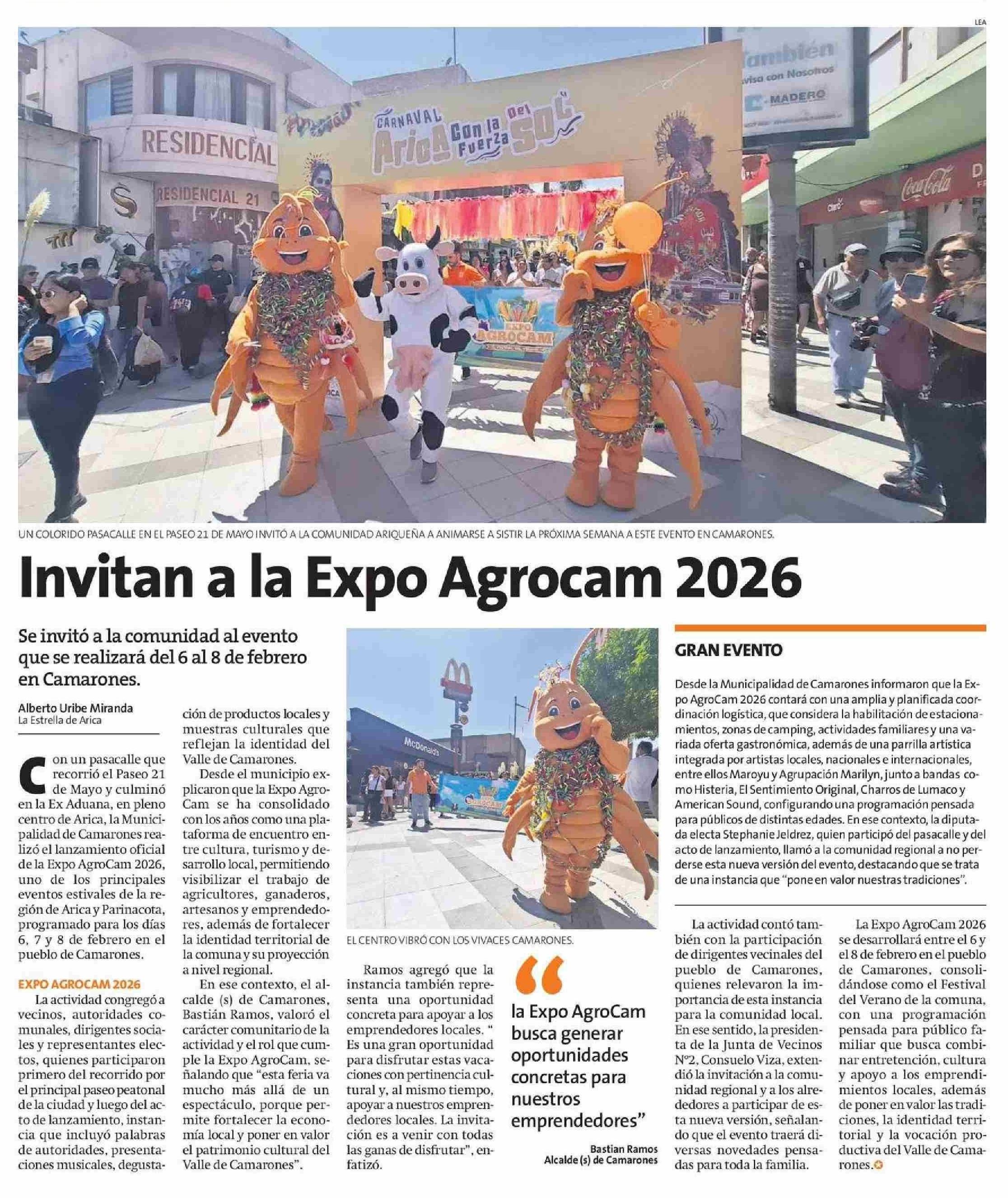 Invitan a la Expo Agrocam 2026 28-01-2026 La Estrella de Arica |