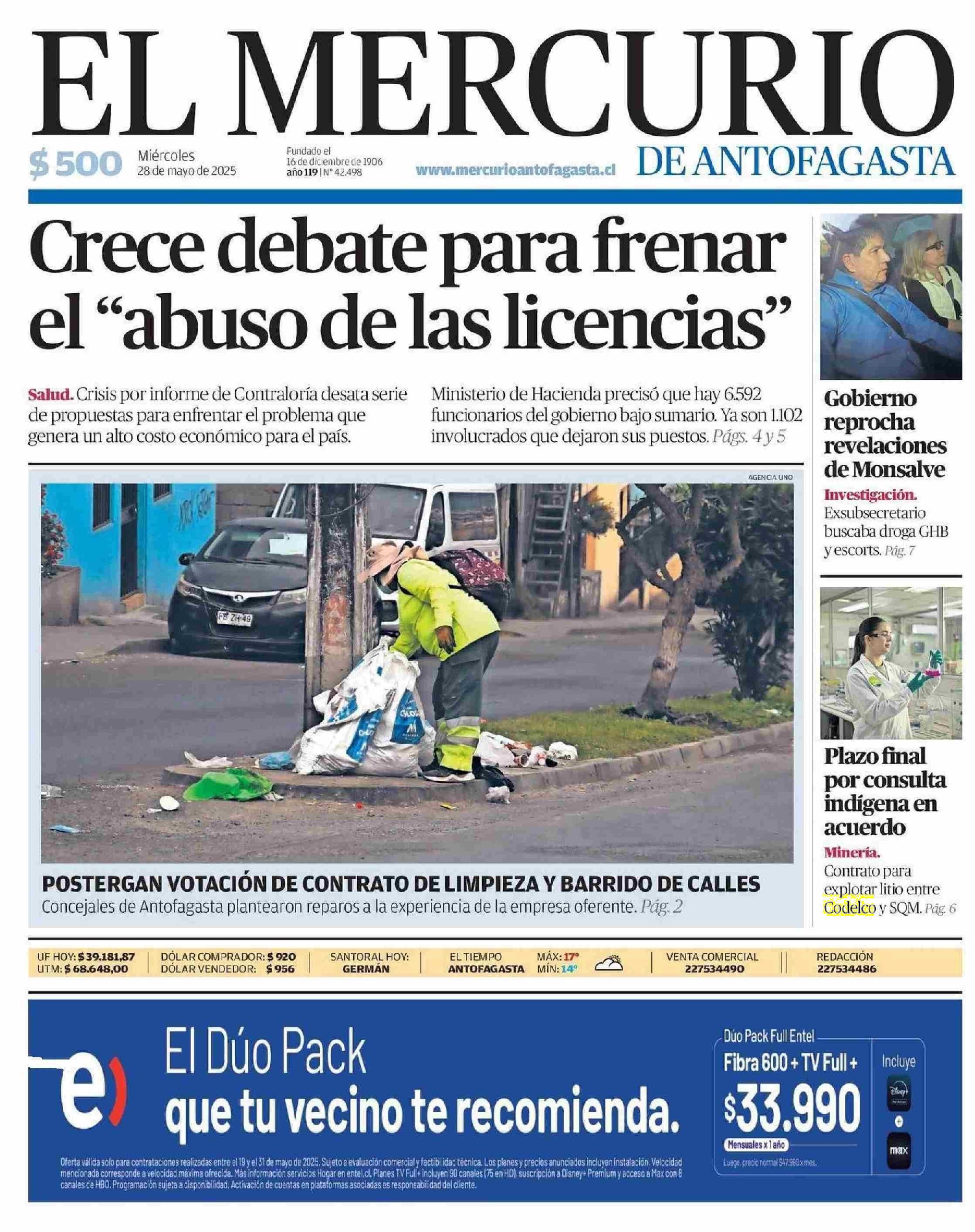 | Fecha: | 28-05-2025 | Sector: | Portada | Región: | Región de Antofagasta |