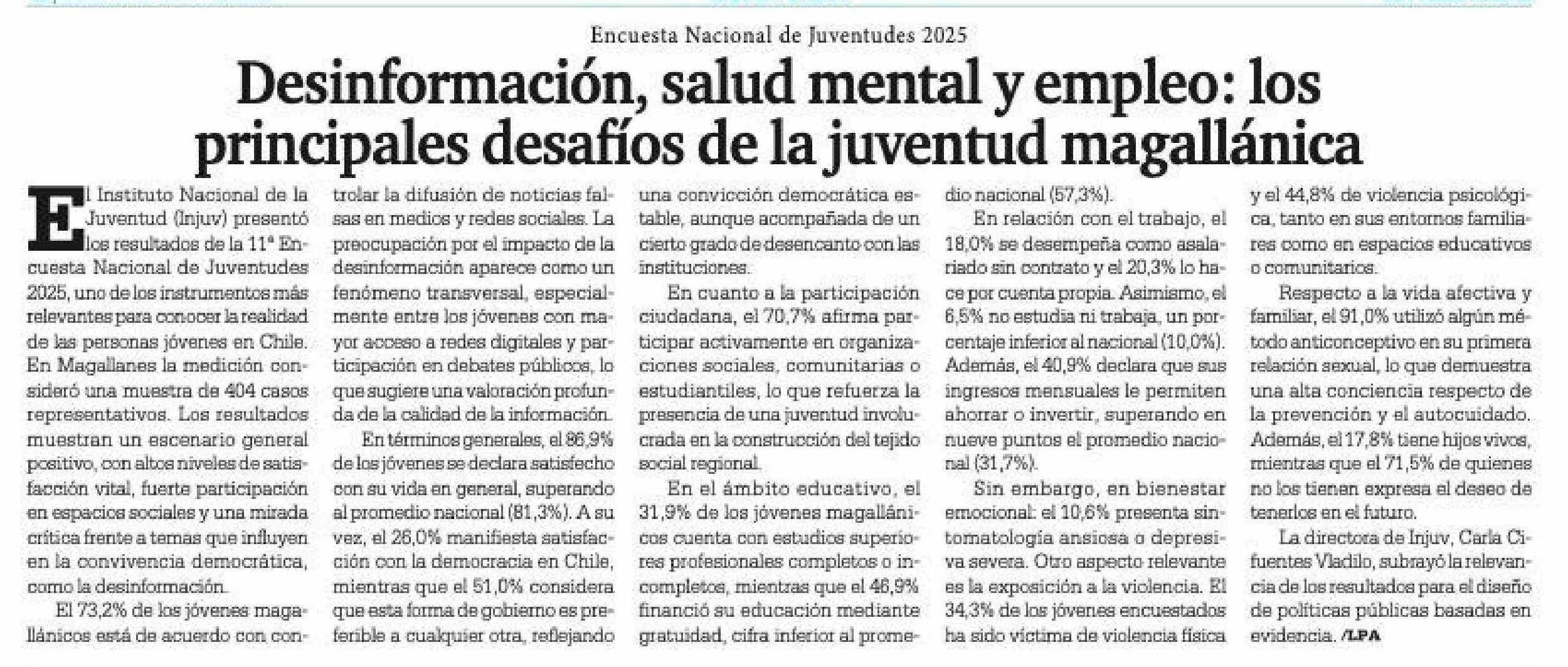 Título: Desinformación, salud mental y empleo: los principales desafíos de la juventud magallánica