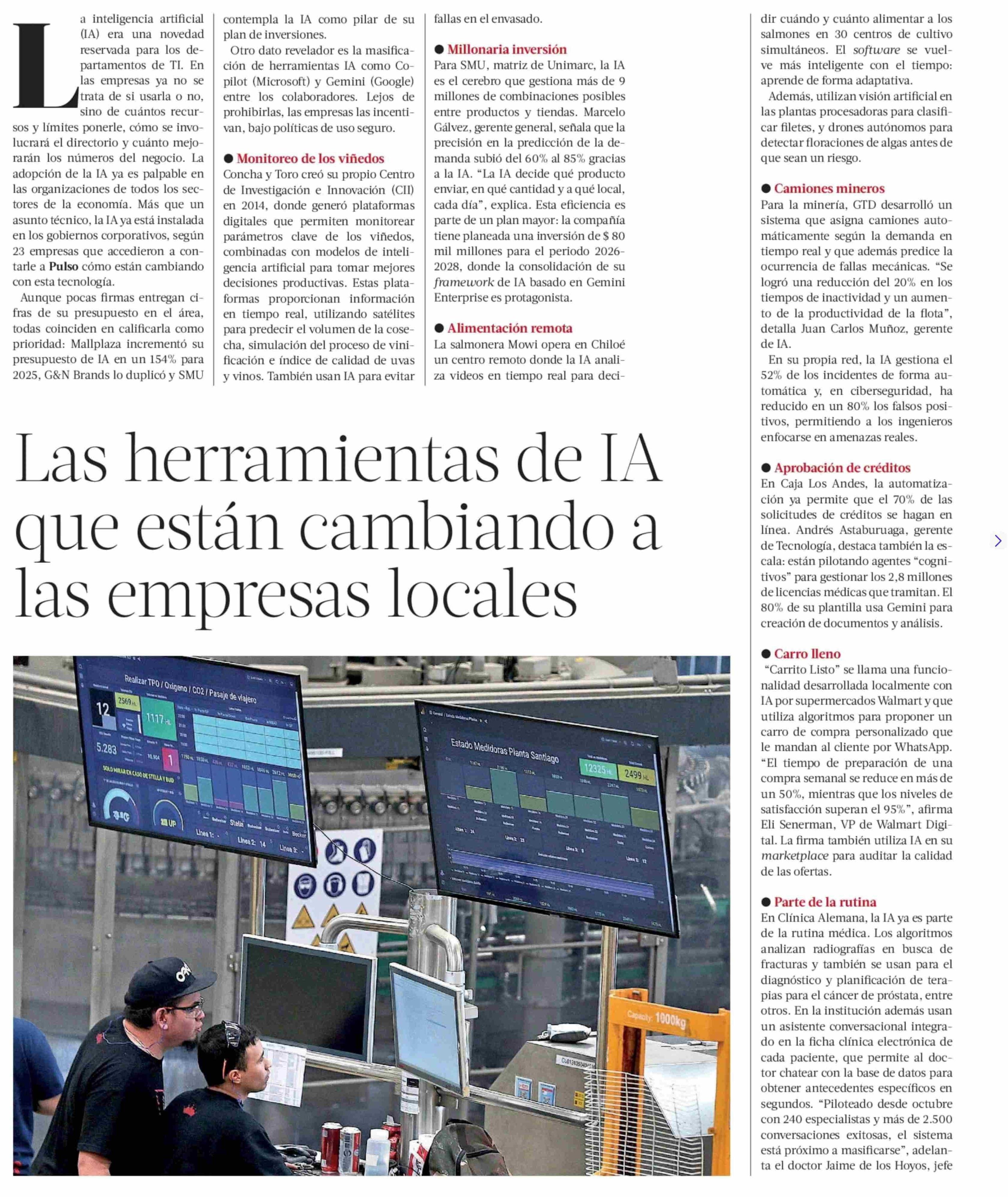 Las herramientas de IA que están cambiando a las empresas locales 07-02-2026 La Tercera |