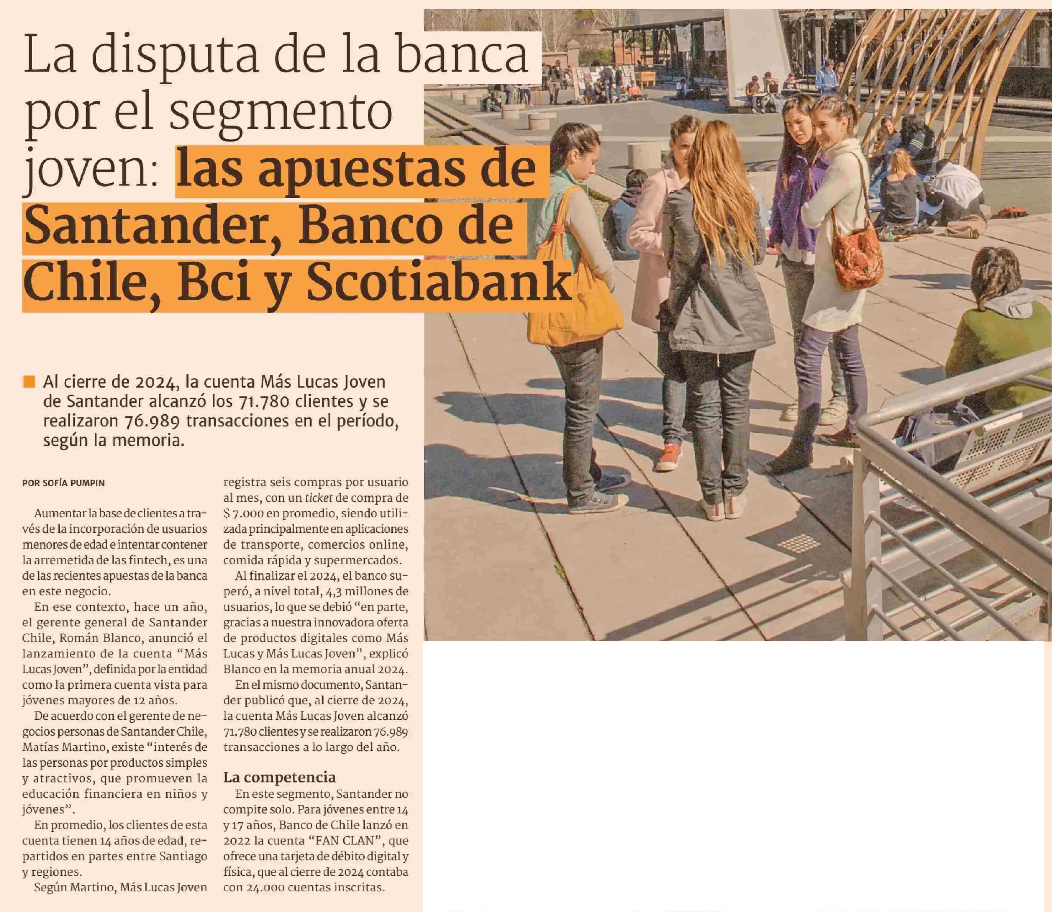 La disputa de la banca por el segmento joven: las apuestas de Santander, Banco de Chile, Bci y Scotiabank 17-06-2025 Diario Financiero |