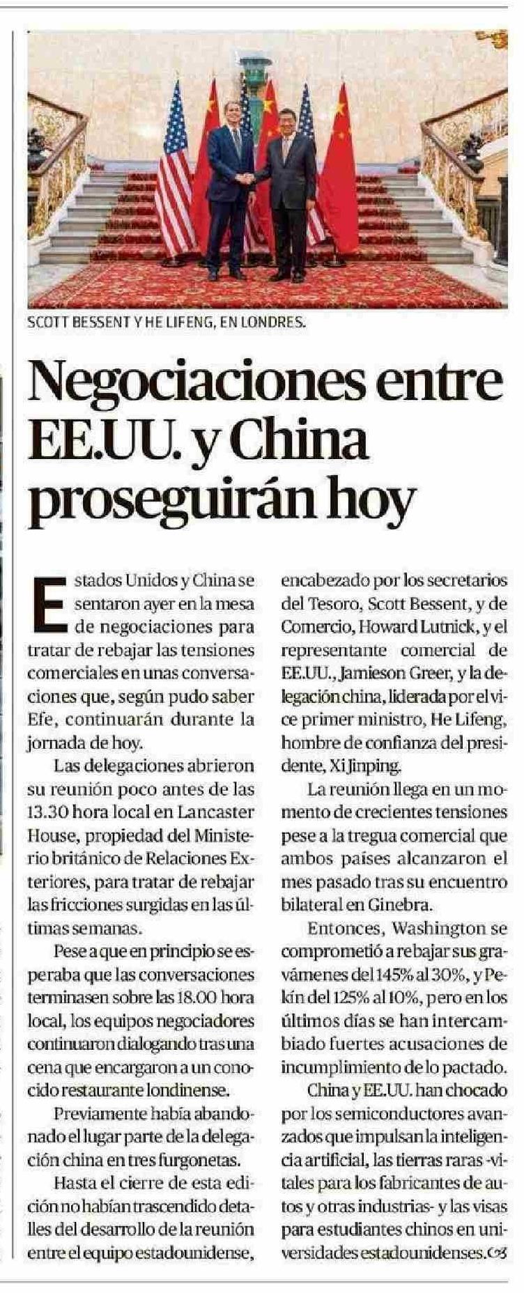 Negociaciones entre EE.UU. y China proseguirán hoy 10-06-2025 El Mercurio de Valparaíso |