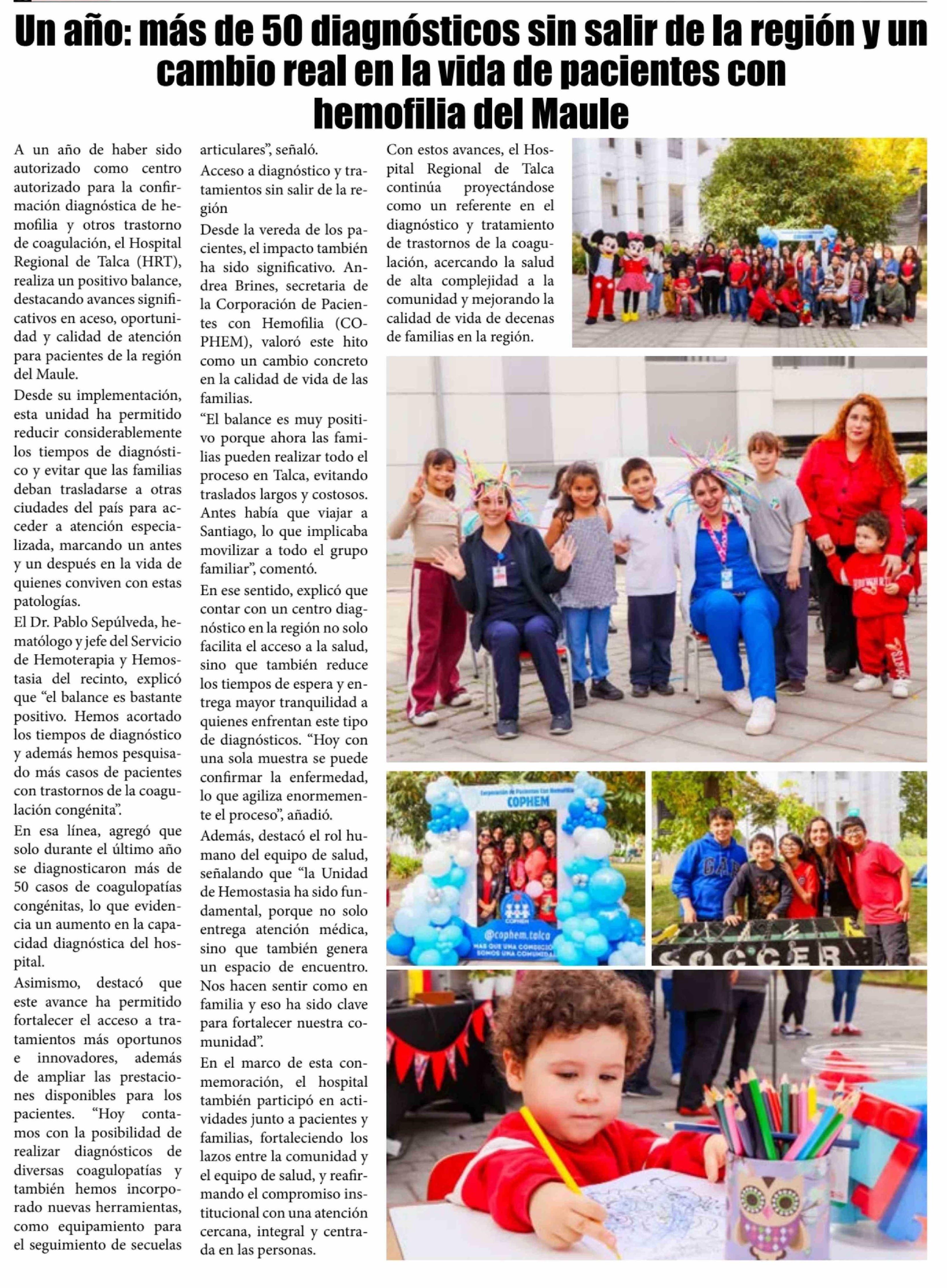 Título: Un año: más de 50 diagnósticos sin salir de la región y un cambio real en la vida de pacientes con hemofilia del Maule