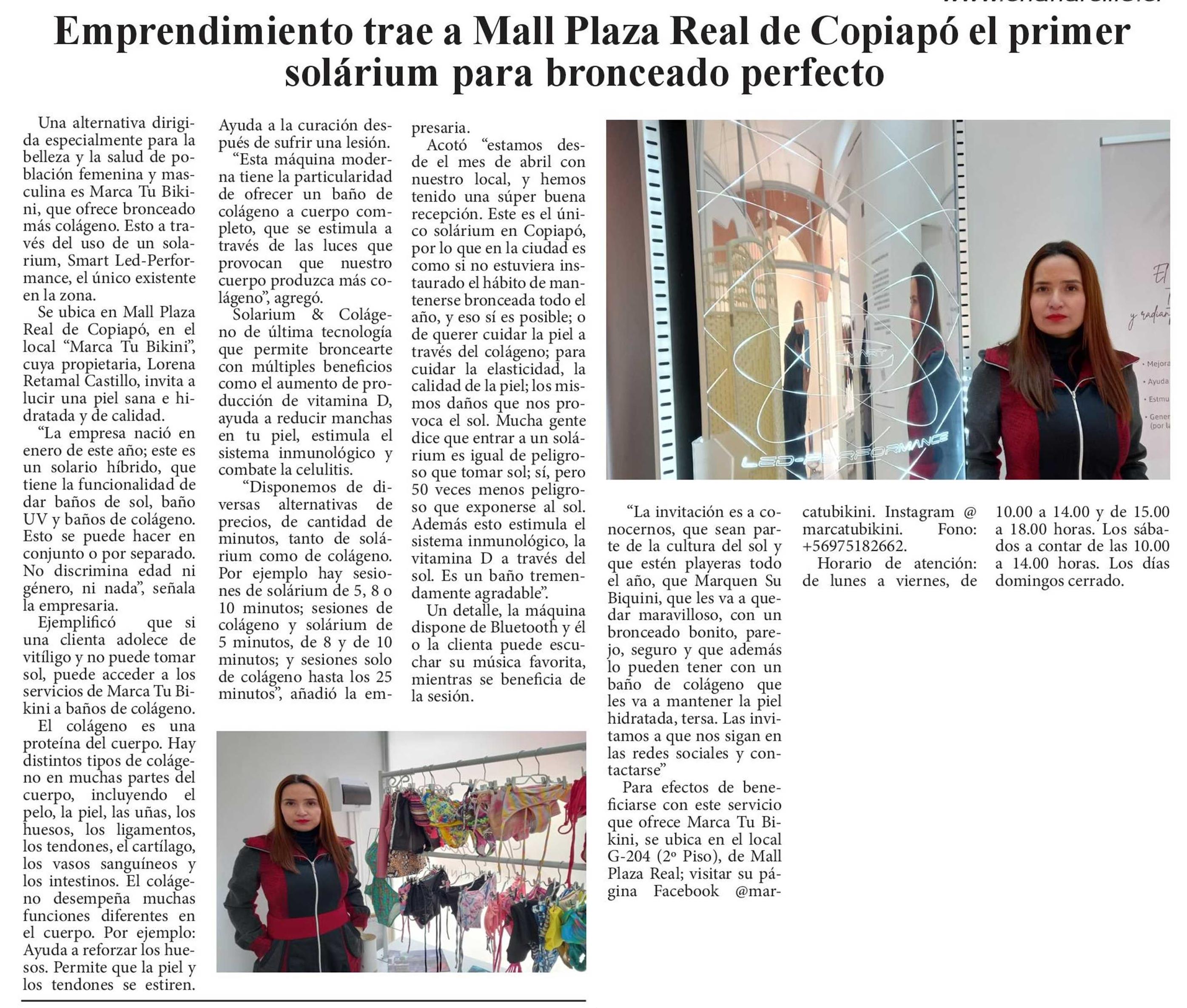 Emprendimiento trae a Mall Plaza Real de Copiapó el primer solárium para bronceado perfecto 23-07-2022 Diario Chañarcillo |
