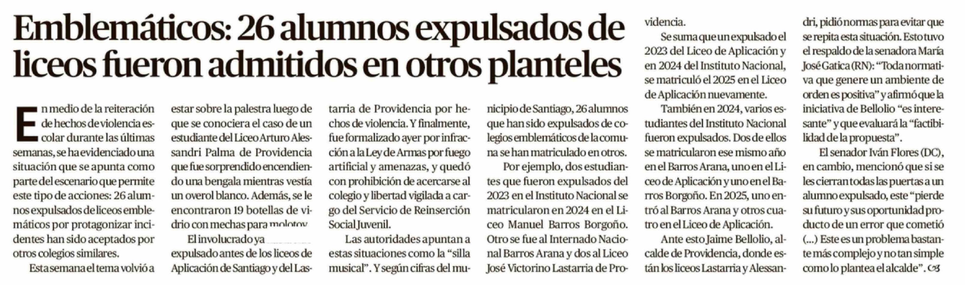| Título: | Emblemáticos: 26 alumnos expulsados de liceos fueron admitidos en otros planteles |