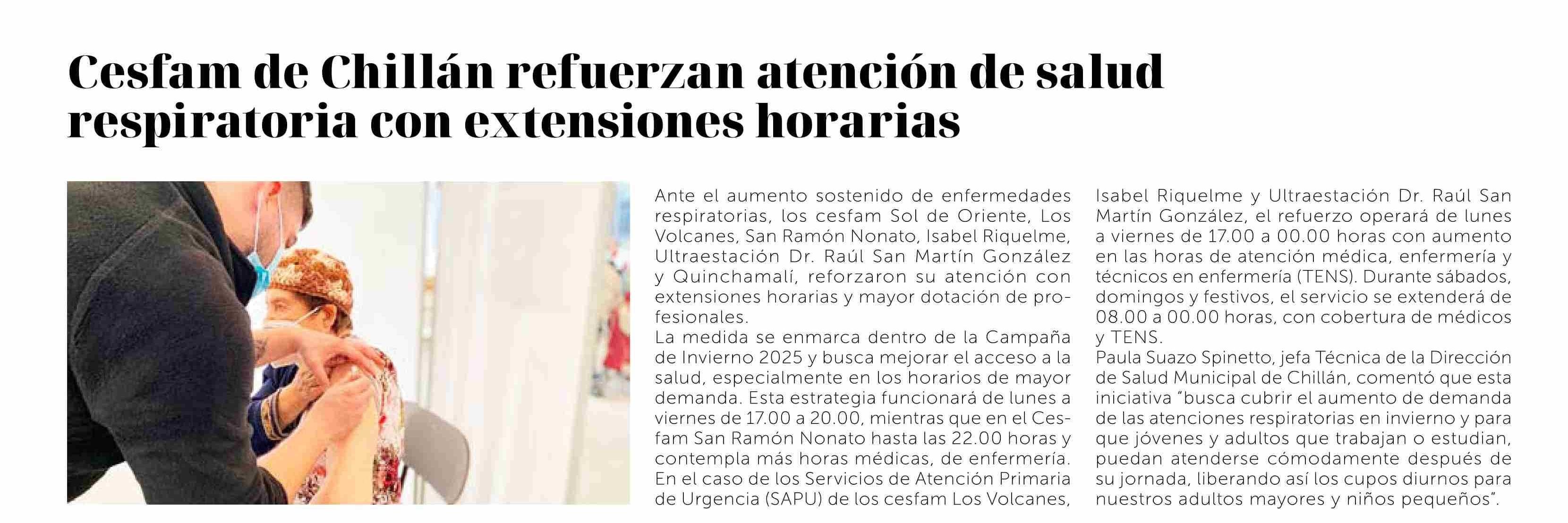 Título: Cesfam de Chillán refuerzan atención de salud respiratoria con extensiones horarias