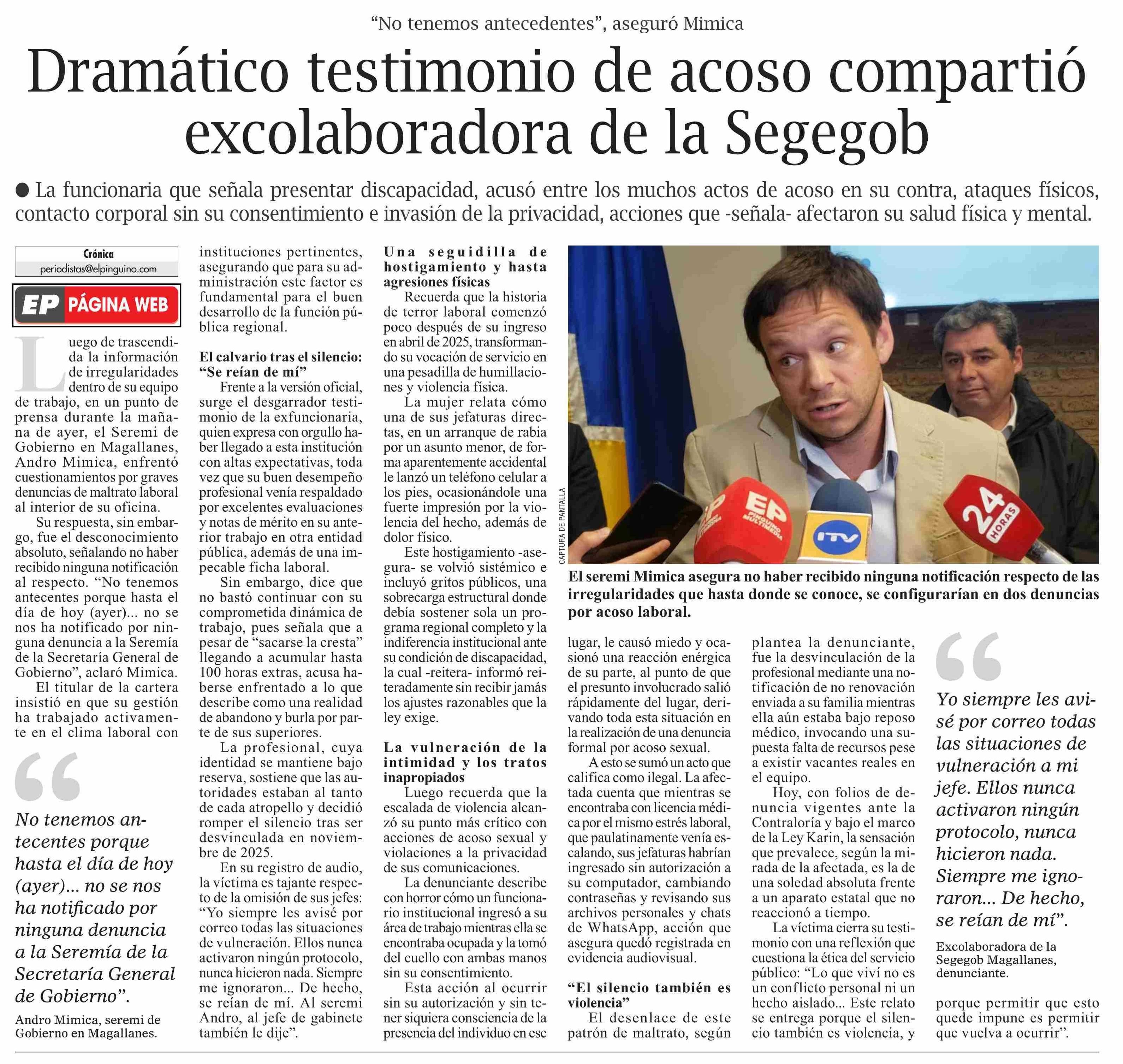 Dramático testimonio de acoso compartió excolaboradora de la Segegob 17-01-2026 El Pingüino |