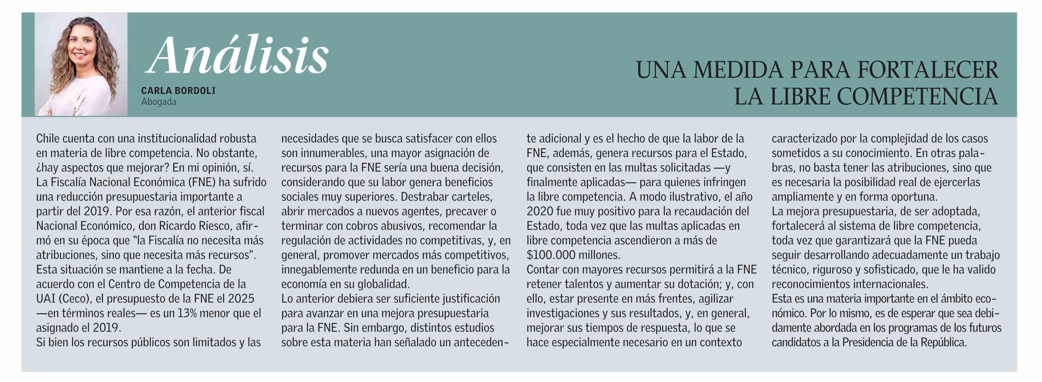 UNA MEDIDA PARA FORTALECER LA LIBRE COMPETENCIA 26-05-2025 El Mercurio |