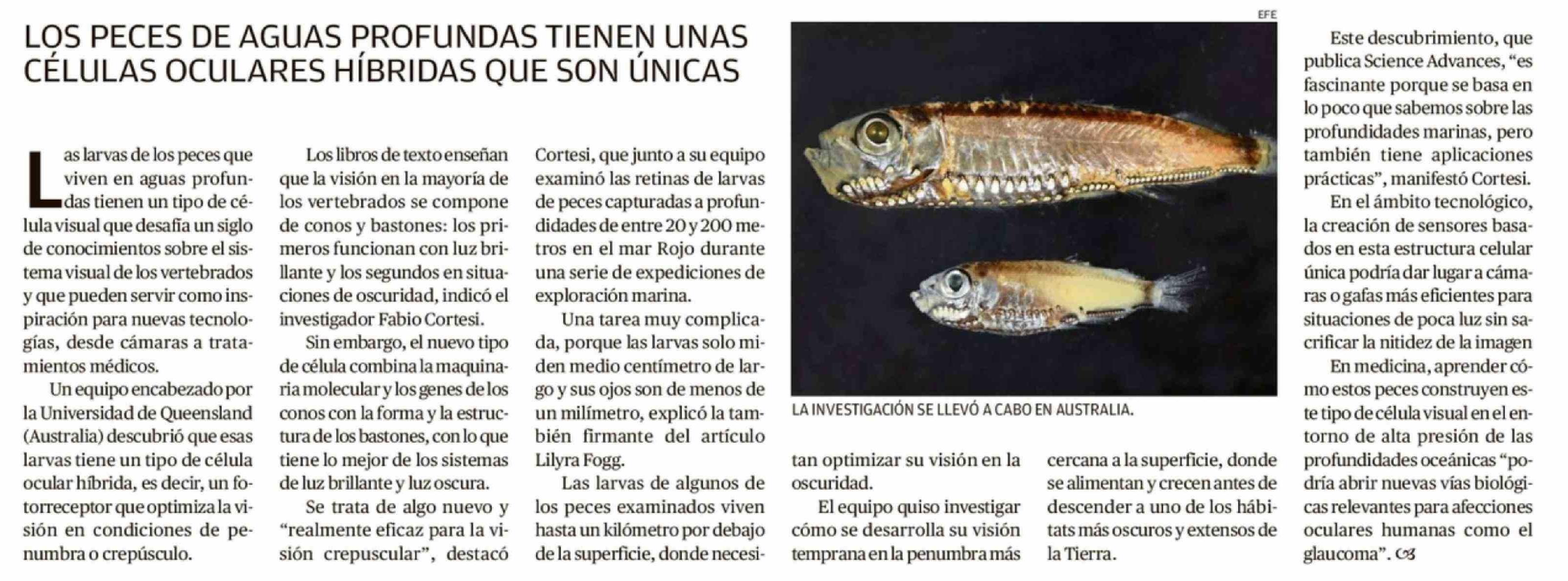 Título: LOS PECES DE AGUAS PROFUNDAS TIENEN UNAS CÉLULAS OCULARES HÍBRIDAS QUE SON ÚNICAS