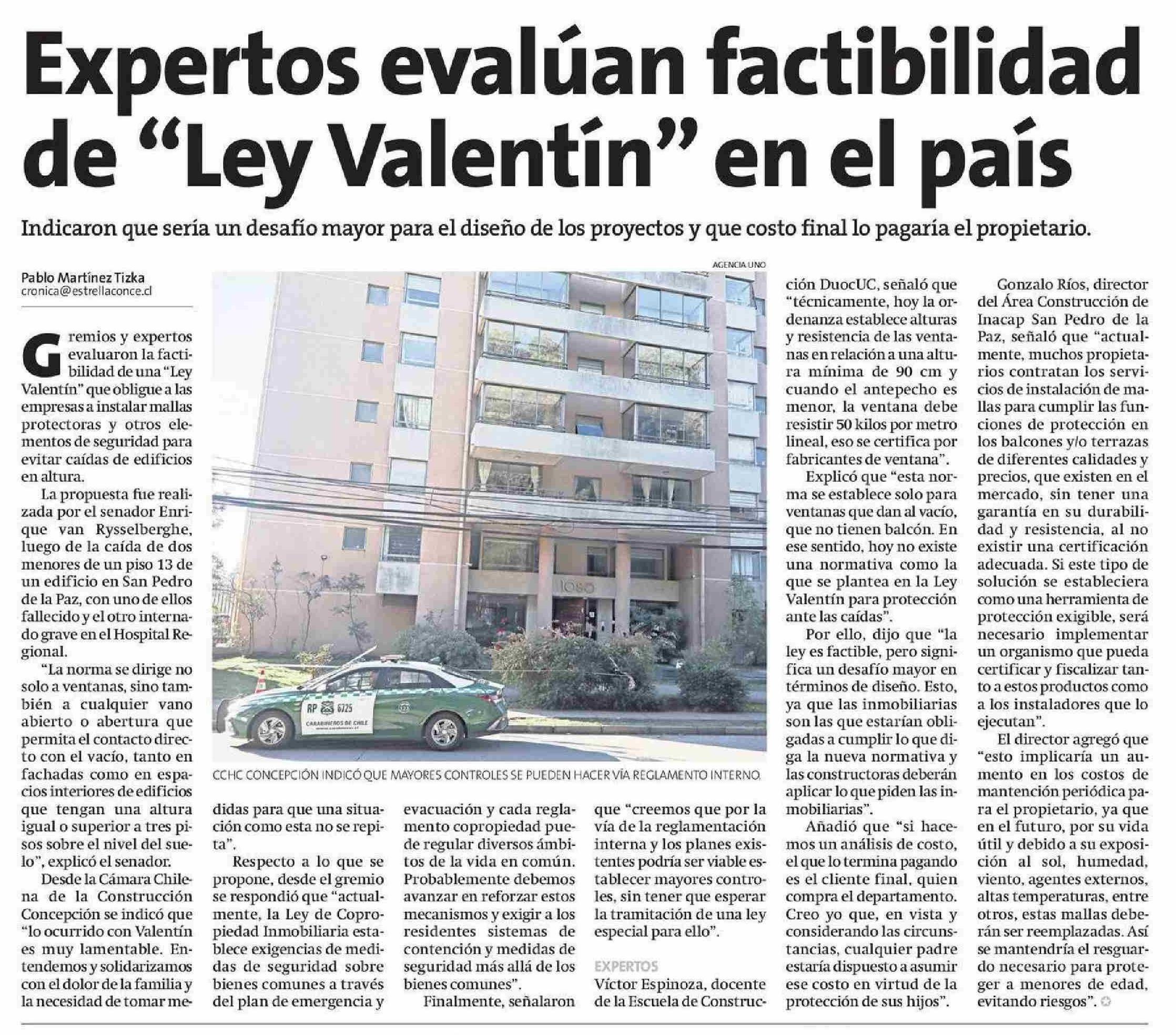 Expertos evalúan factibilidad de "Ley Valentín" en el país 07-06-2025 La Estrella de Concepción |
