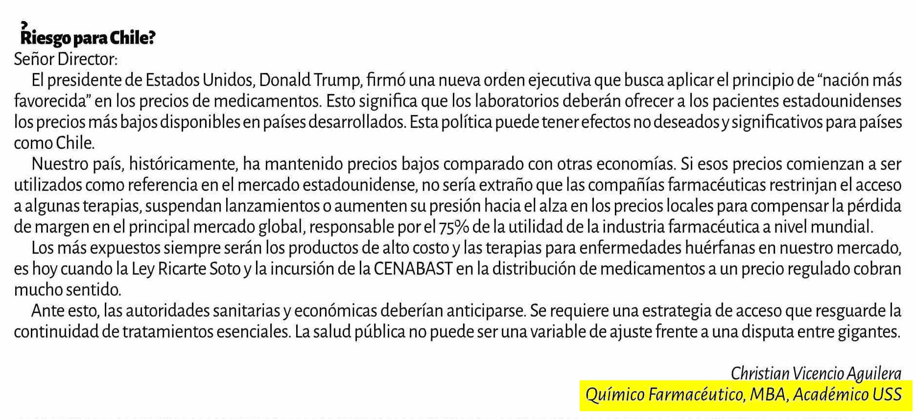 | Título: | CARTAS: ¿Riesgo para Chile? |