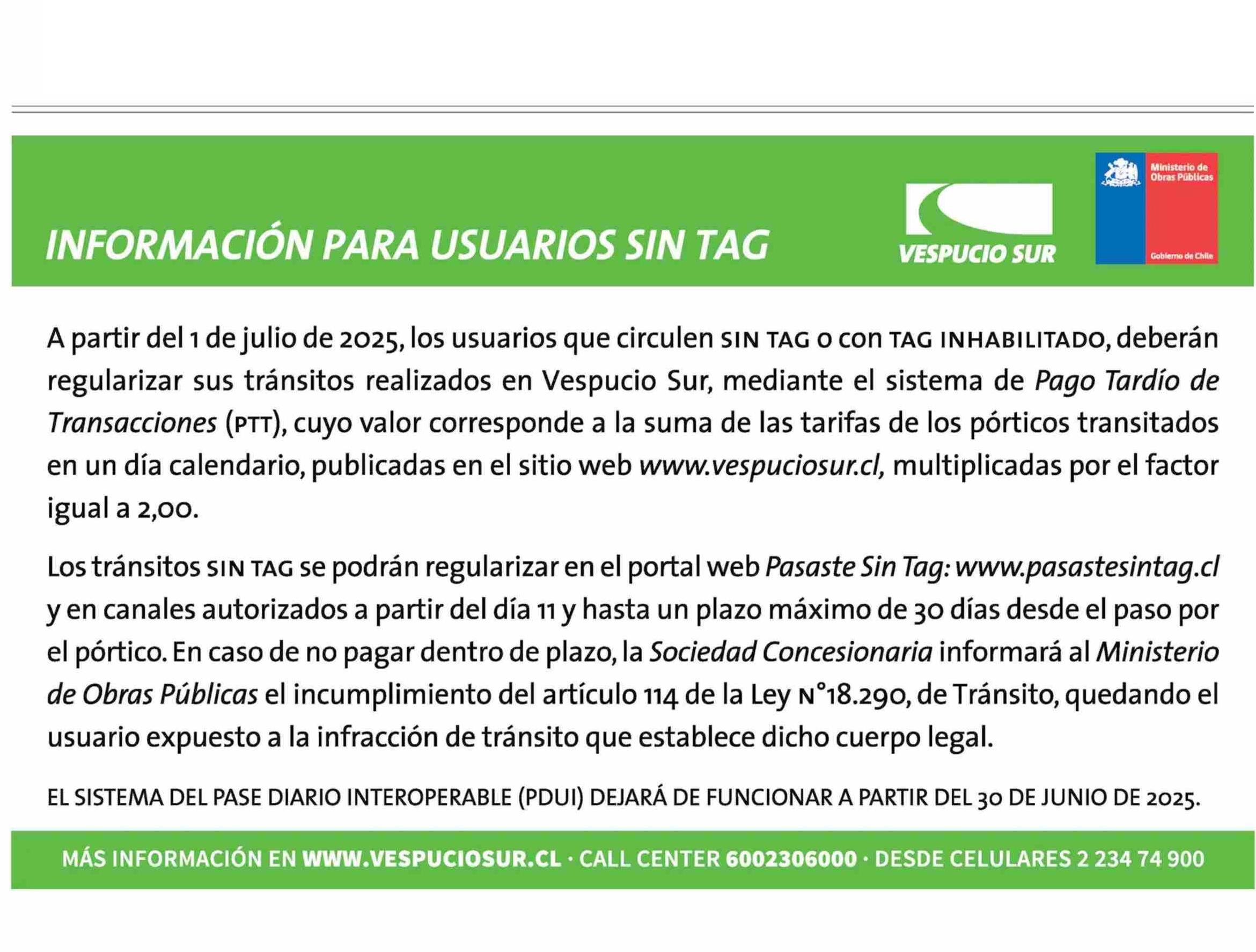 INFORMACIÓN PARA USUARIOS SIN TAG 15-06-2025 Las Últimas Noticias |