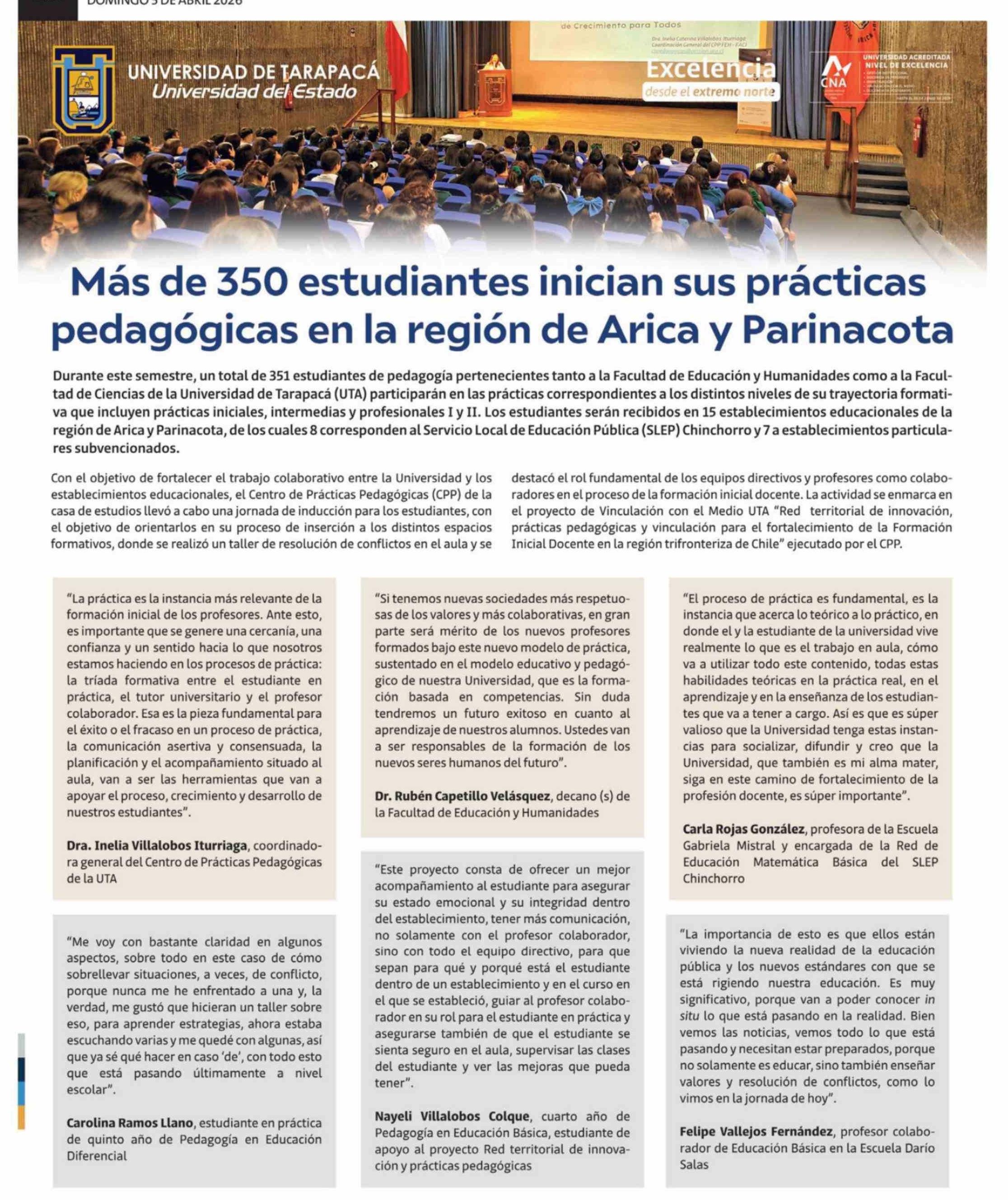 Más de 350 estudiantes inician sus prácticas pedagógicas en la región de Arica y Parinacota 05-04-2026 La Estrella de Arica |