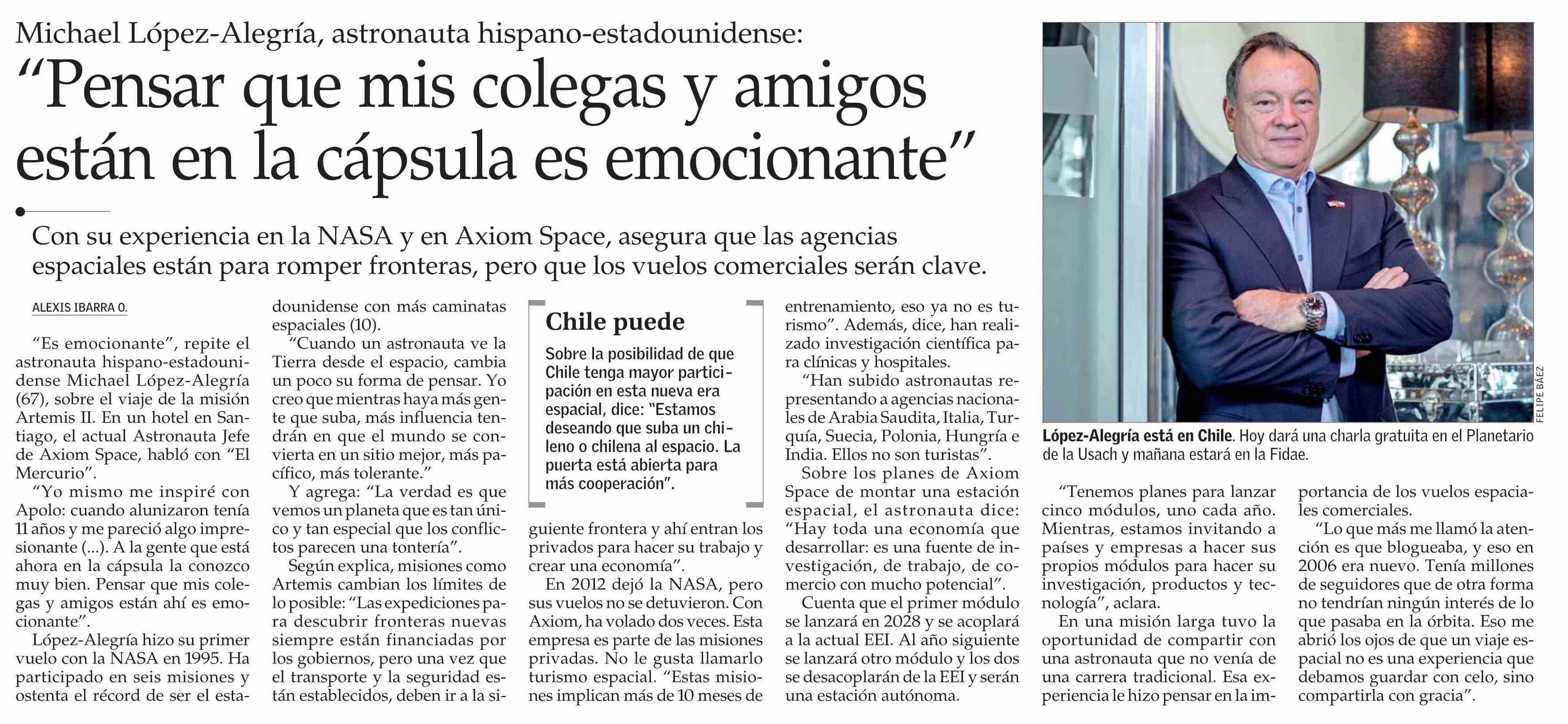 “Pensar que mis colegas y amigos están en la cápsula es emocionante” 07-04-2026 El Mercurio |