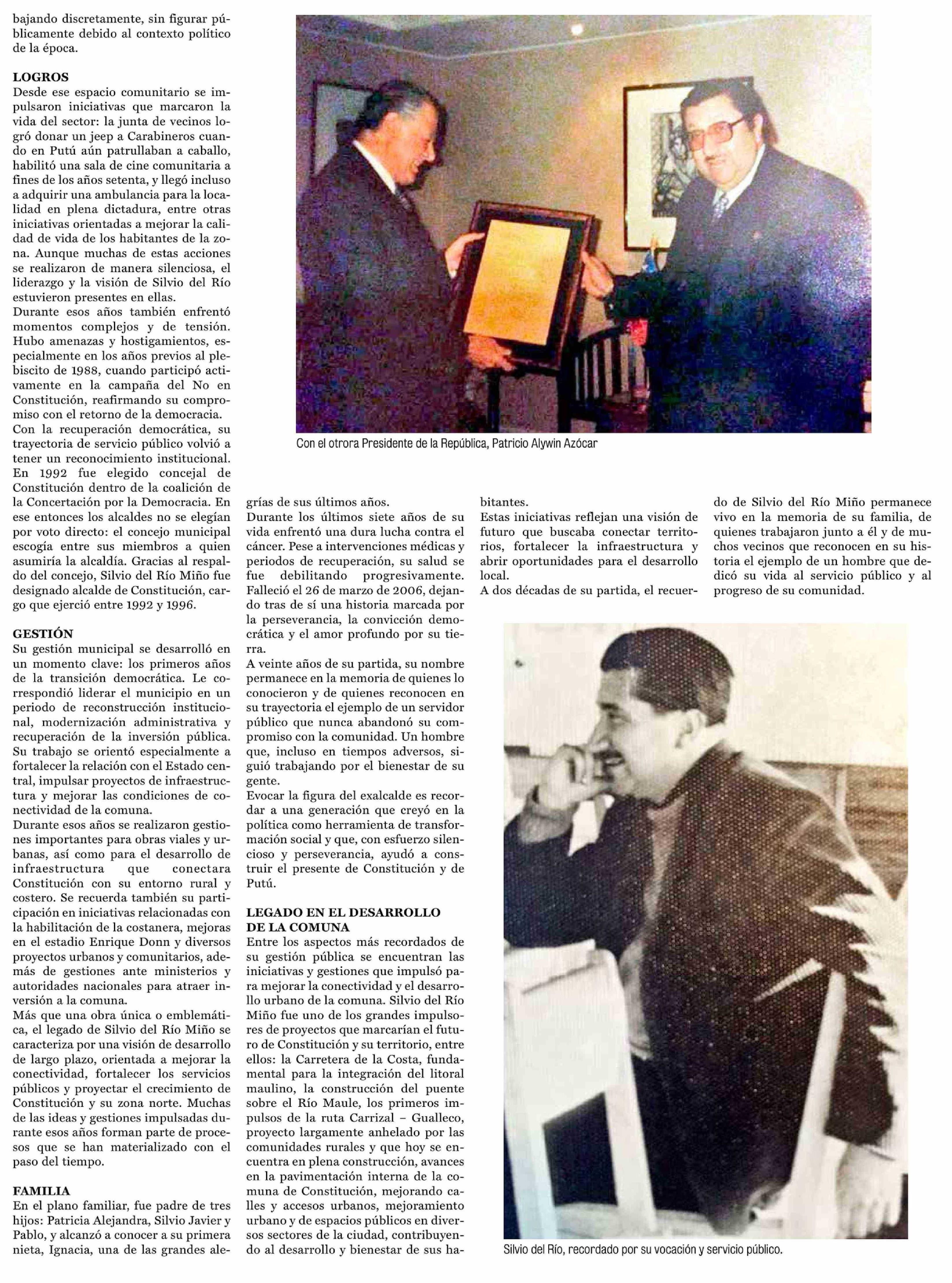 | Título: | Silvio del Río Miño: 20 años de ausencia, una vida que sigue marcando el corazón social y político de Constitución |