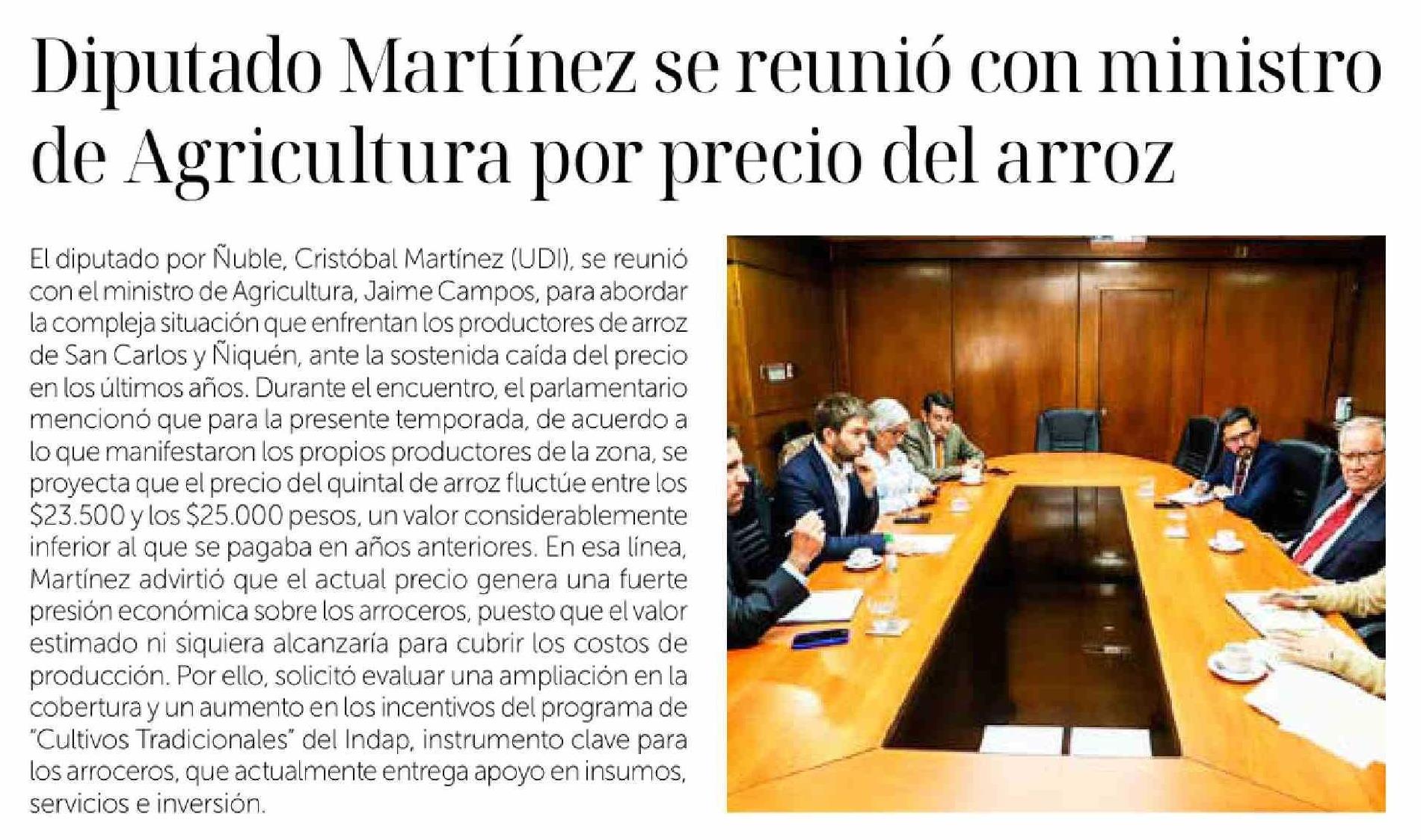 | Título: | Diputado Martínez se reunió con ministro de Agricultura por precio del arroz |