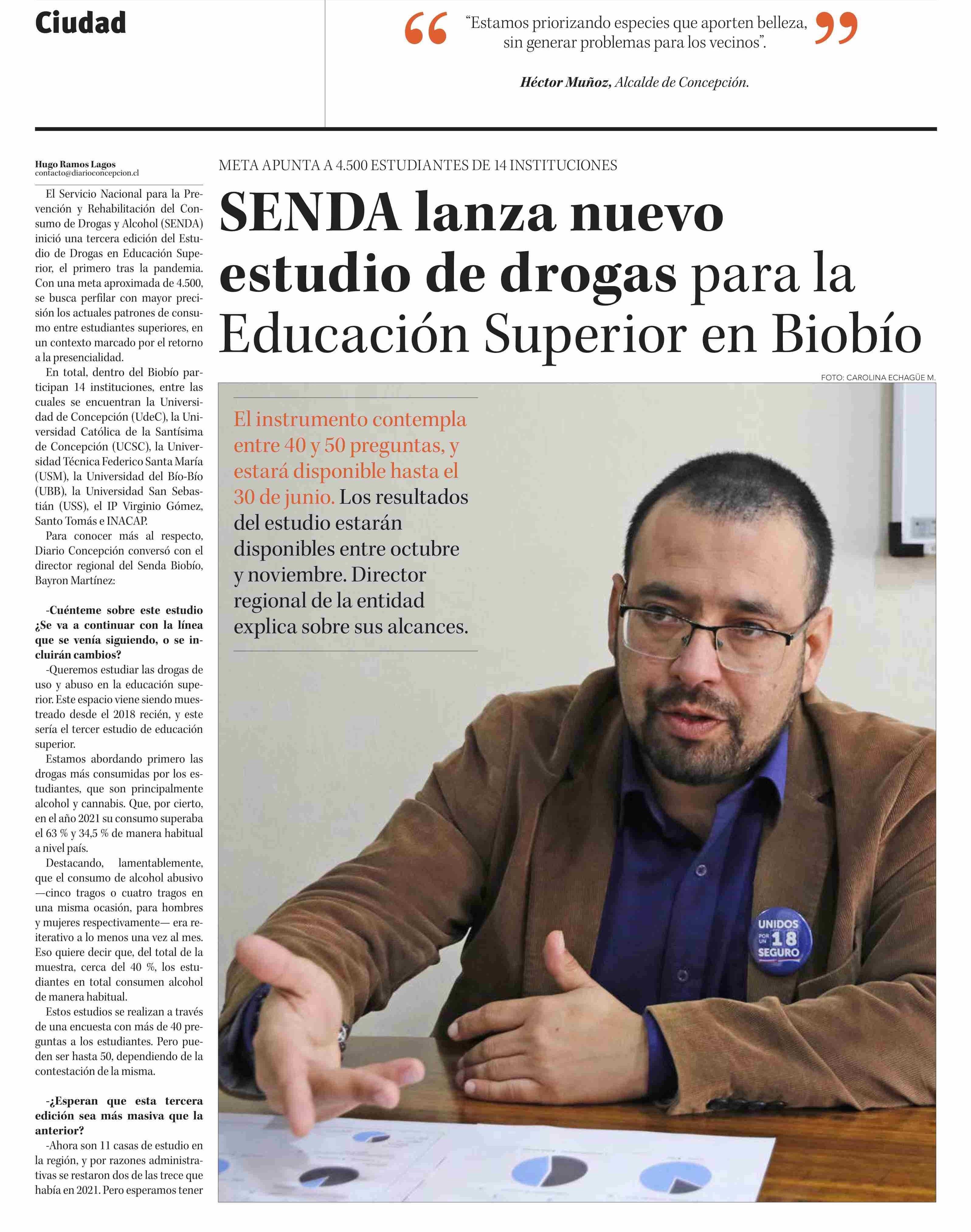Título: SENDA lanza nuevo estudio de drogas para la Educación Superior en Biobío