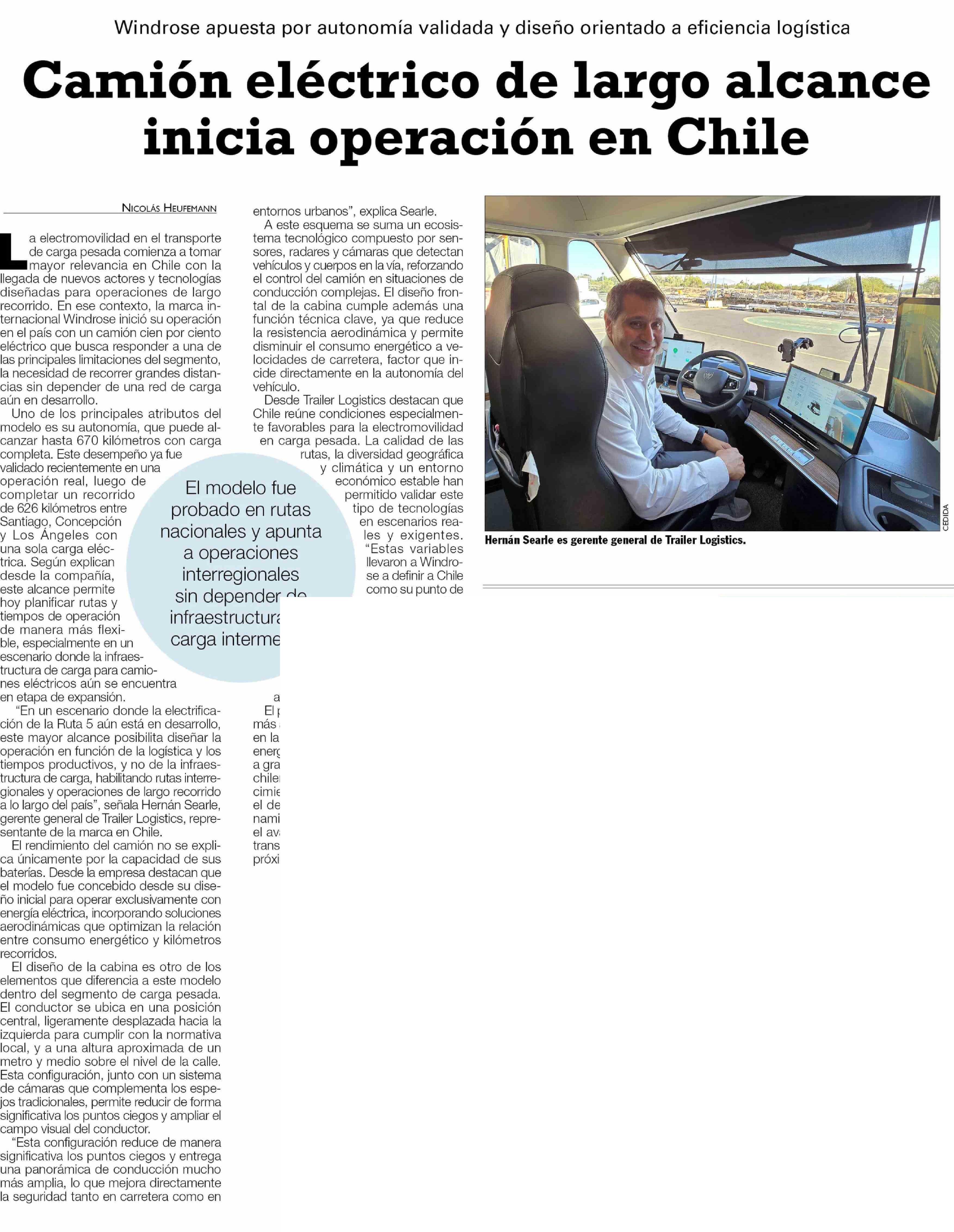 Camión eléctrico de largo alcance 09-02-2026 Las Últimas Noticias |