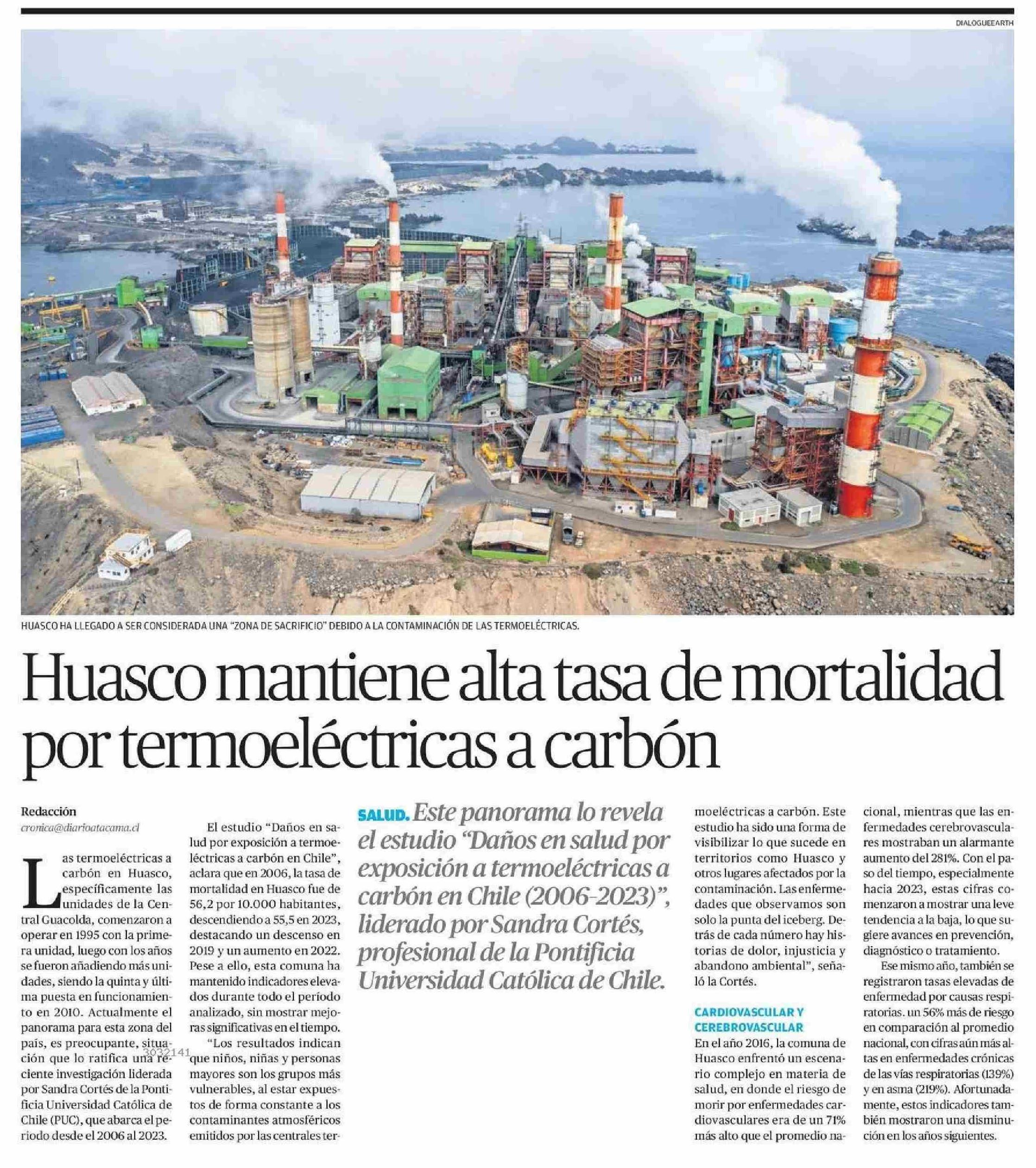 Huasco mantiene alta tasa de mortalidad por termoeléctricas a carbón 24-06-2025 El Diario de Atacama |