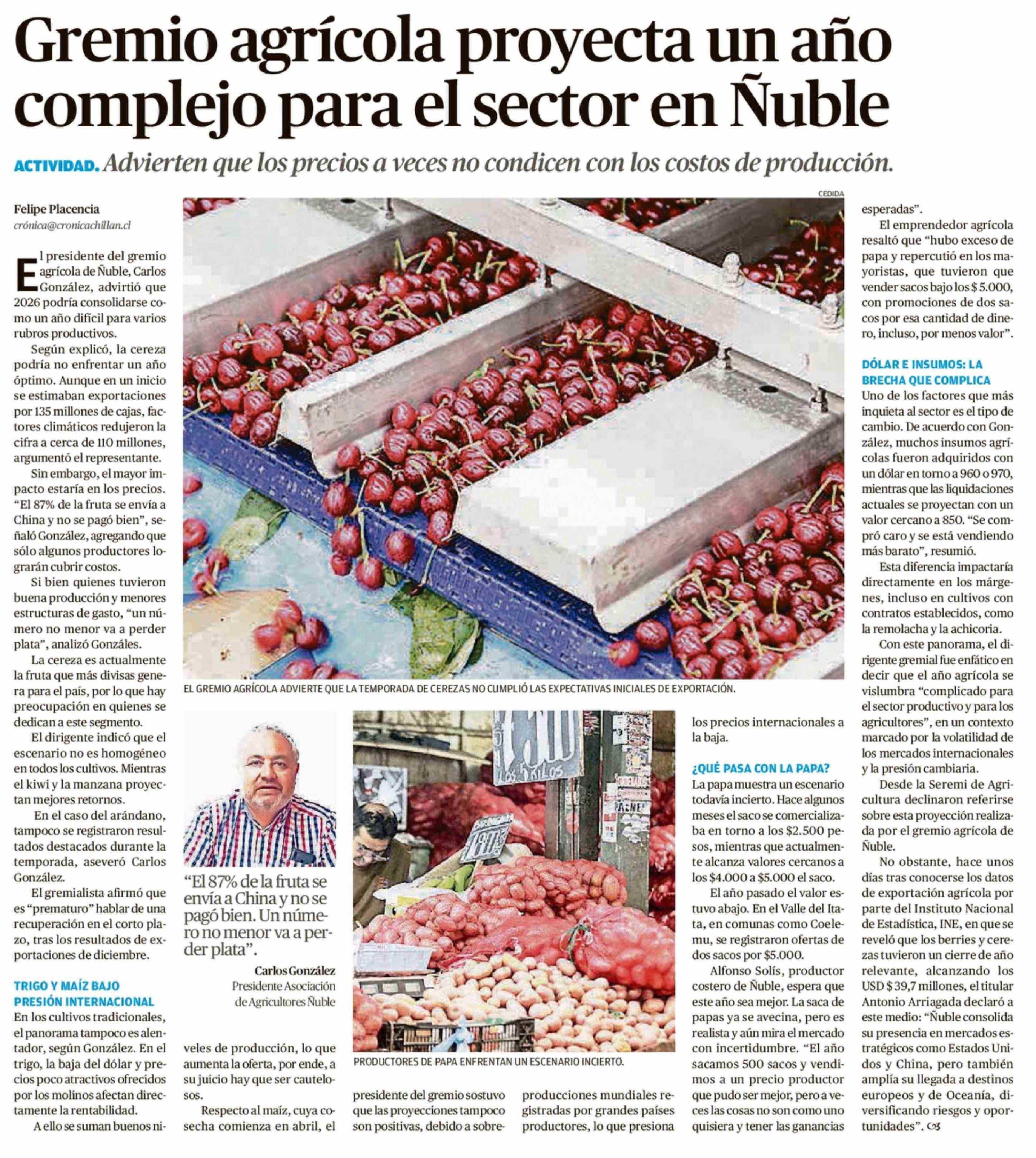 Título: Gremio agrícola proyecta un año complejo para el sector en Ñuble