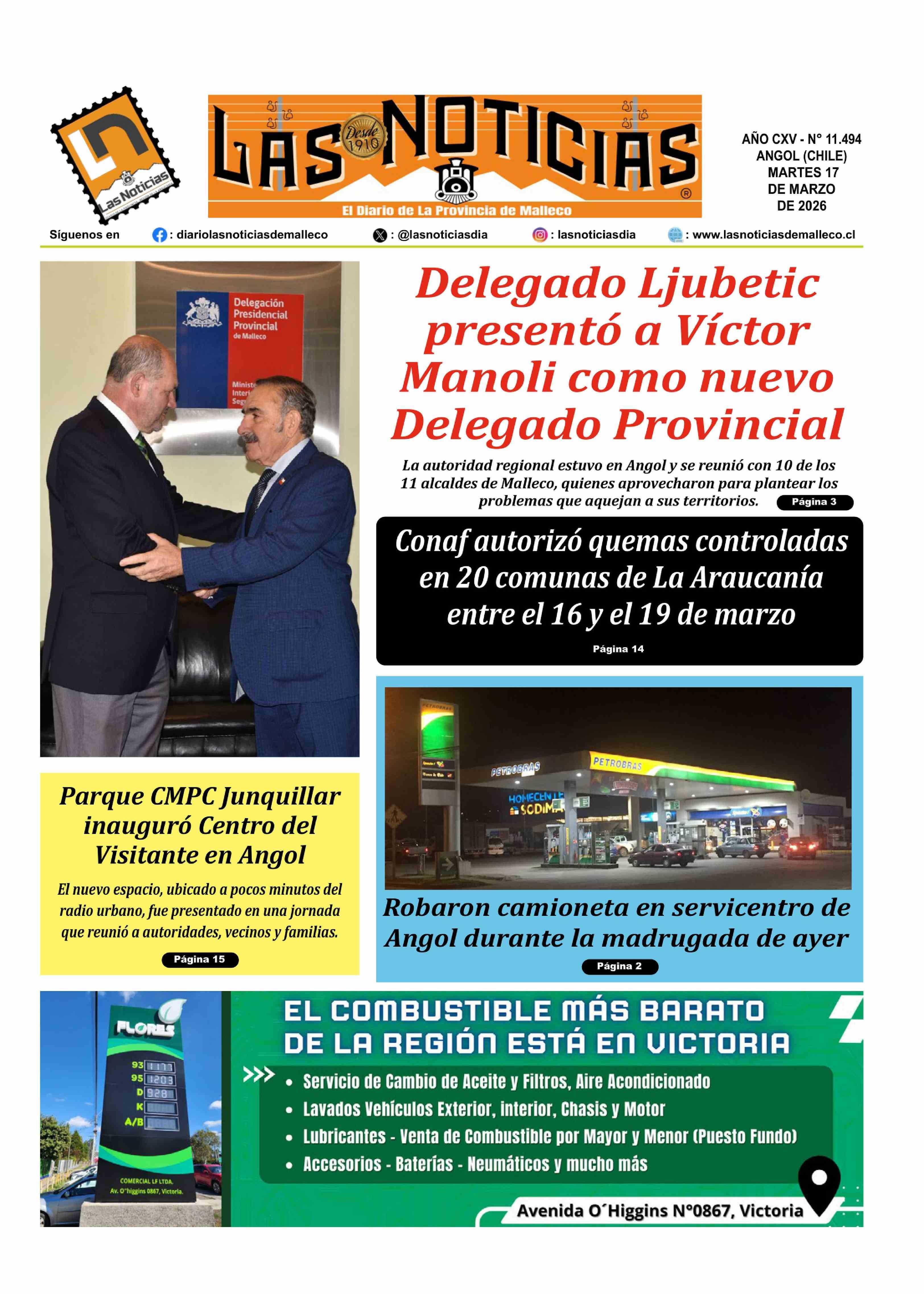 PORTADA LAS NOTICIAS DE MALLECO CHILE 17-03-2026 Las Noticias |