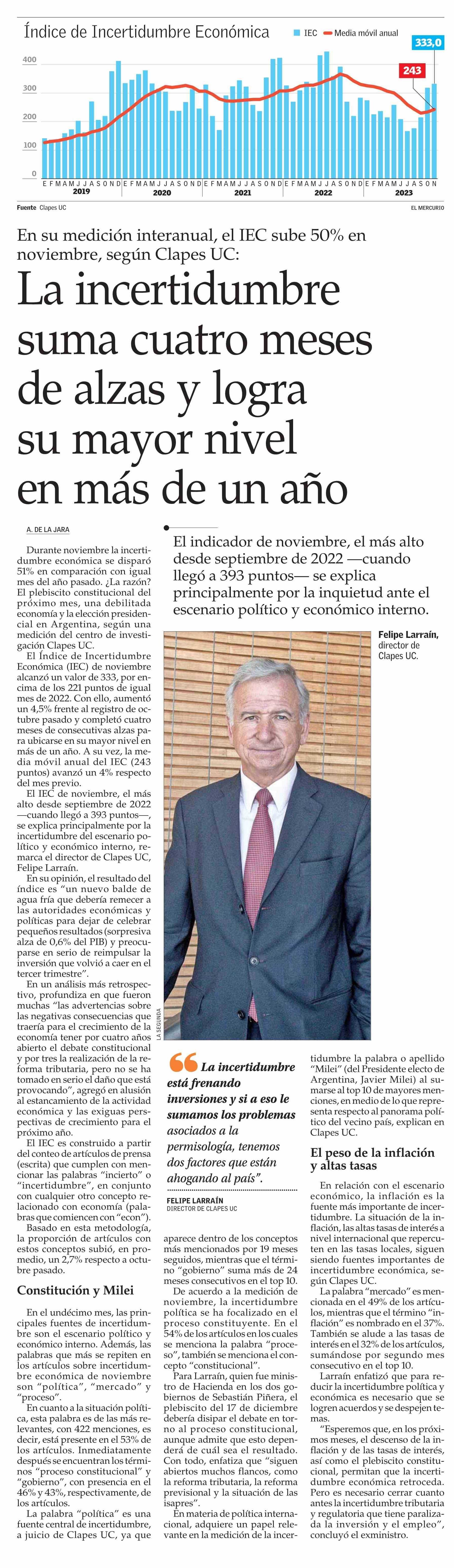 La incertidumbre suma cuatro meses de alzas y logra su mayor nivel en más de un año 27-11-2023 El Mercurio |
