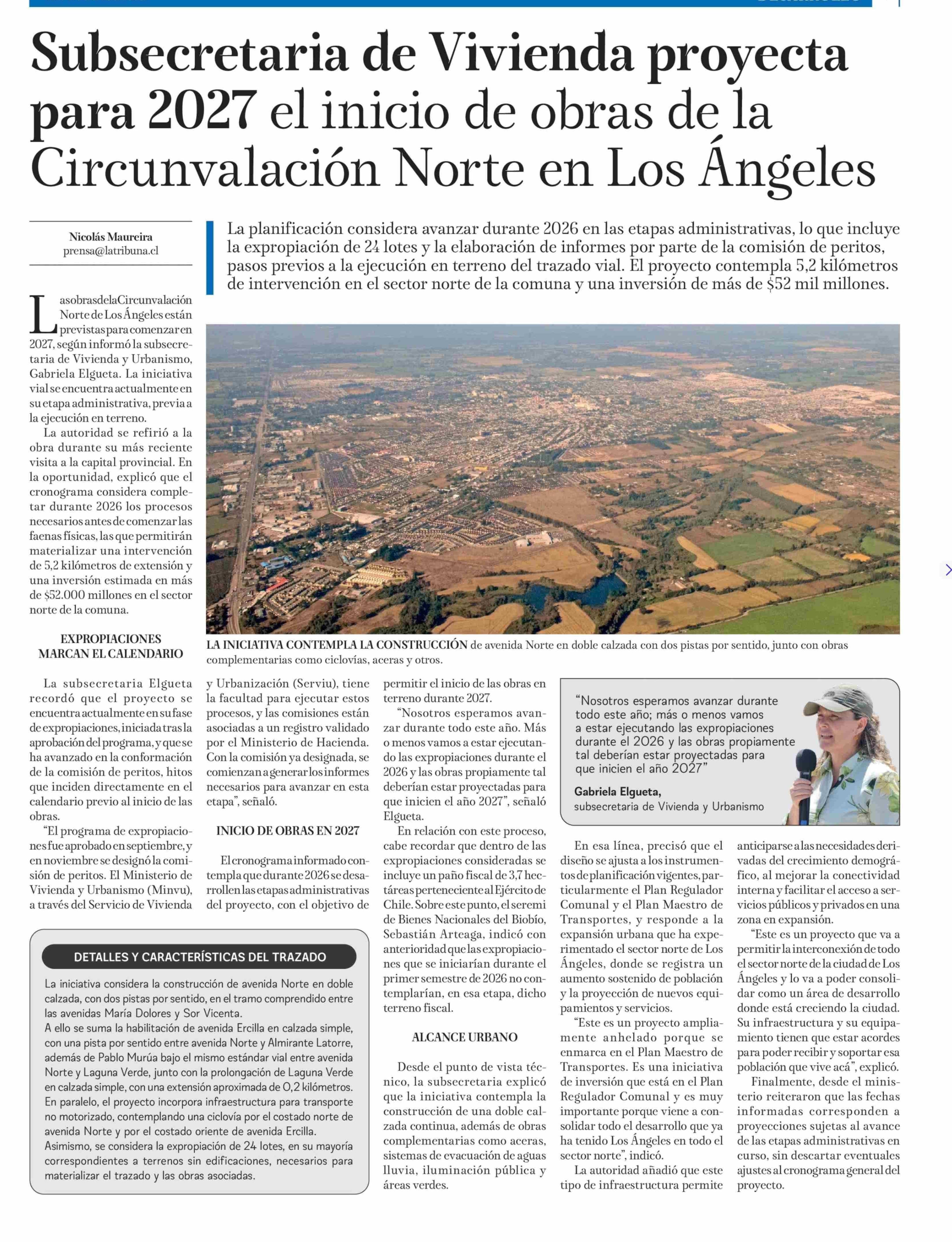 Subsecretaria de Vivienda proyecta para 2027 el inicio de obras la Circunvalación Norte en Los Angeles 12-01-2026 La Tribuna |