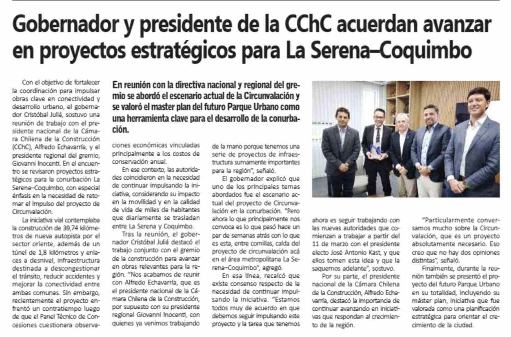 Gobernador y presidente de la CChC acuerdan avanzar en proyectos estratégicos para La Serena-Coquimbo 06-03-2026 Semanario Tiempo |