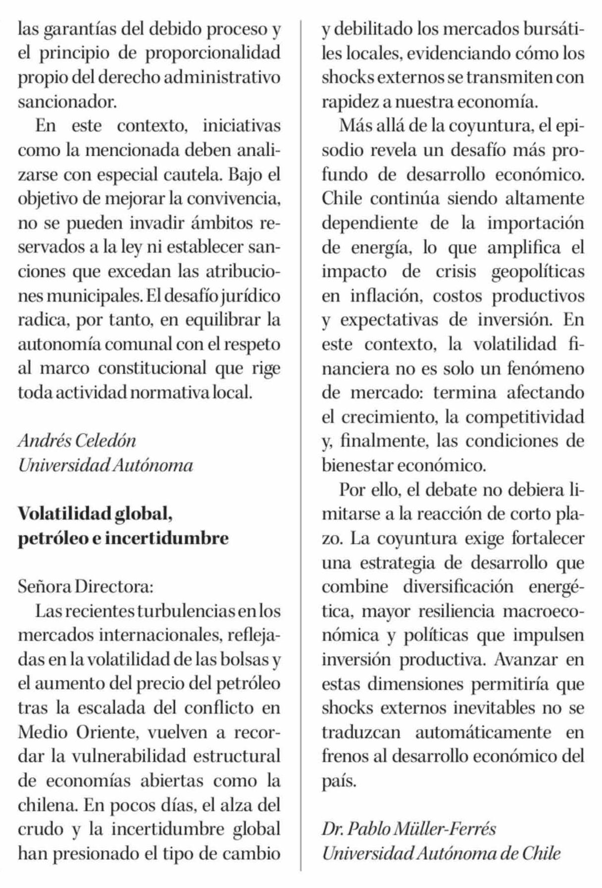 Título: Cartas: Volatilidad global, petróleo e incertidumbre