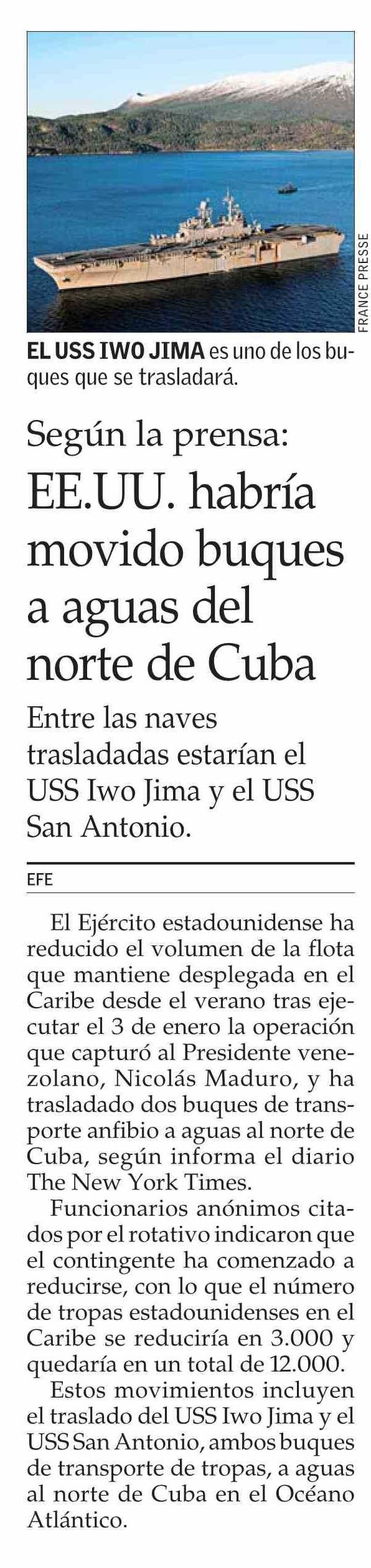 Título: Según la prensa: EE.UU. habría movido buques a aguas del norte de Cuba