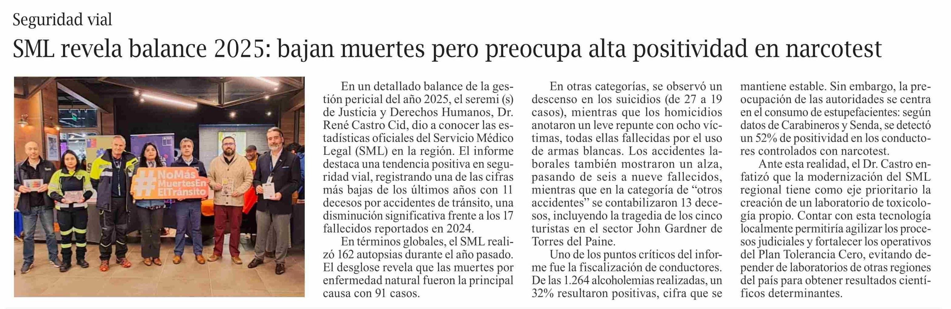 Título: SML revela balance 2025: bajan muertes pero preocupa alta positividad en narcotest