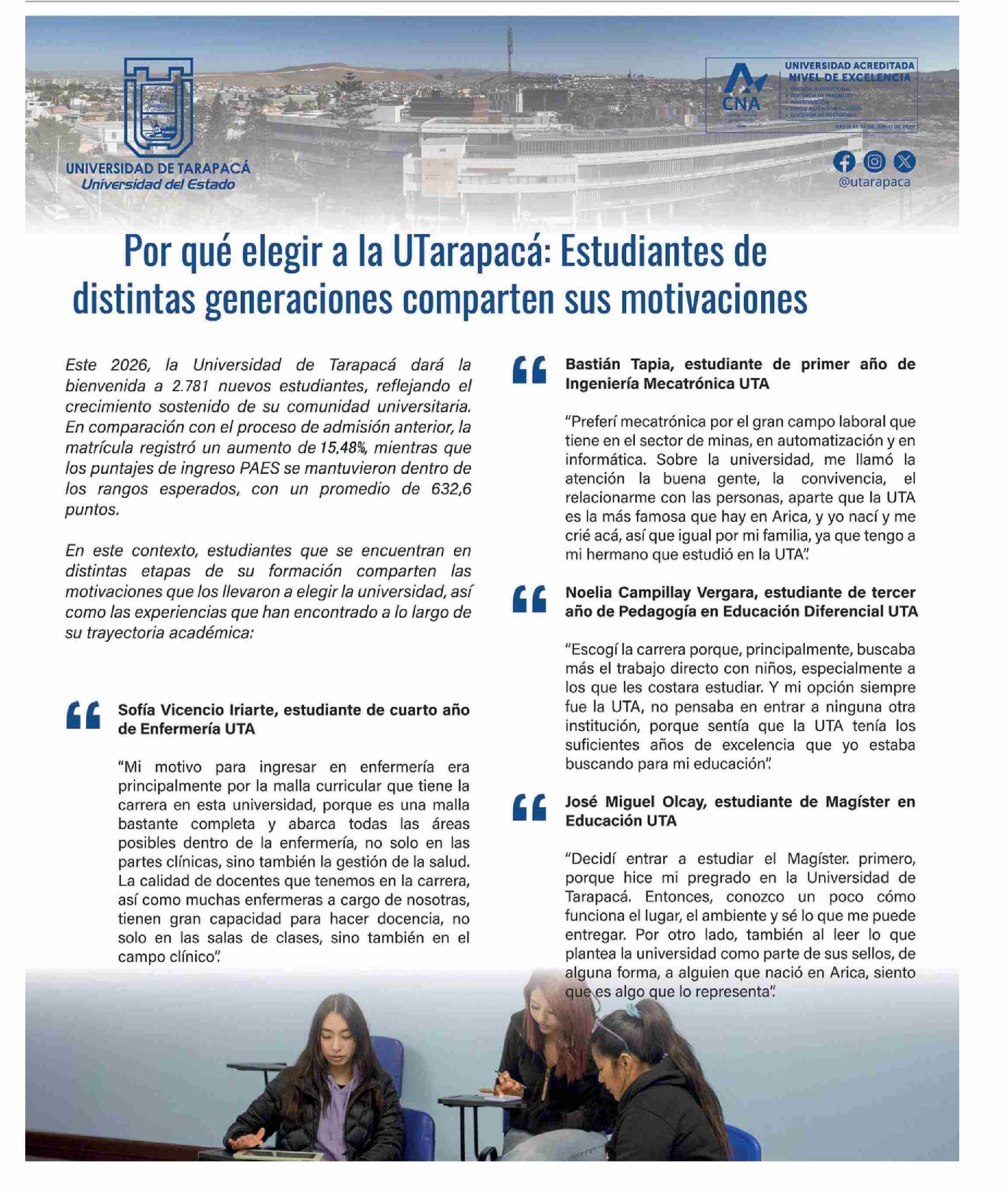 AVISO UNIVERSIDAD: UNIVERSIDAD DE TARAPACÁ 15-03-2026 El Mercurio de Calama |