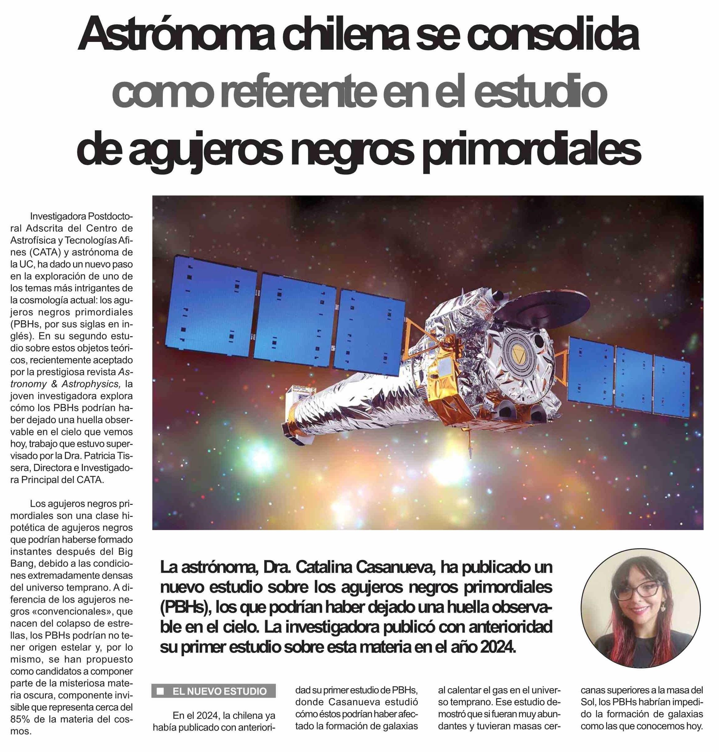 Astrónoma chilena se consolida como referente en el estudio de agujeros negros primordiales 12-06-2025 Diario la Región |