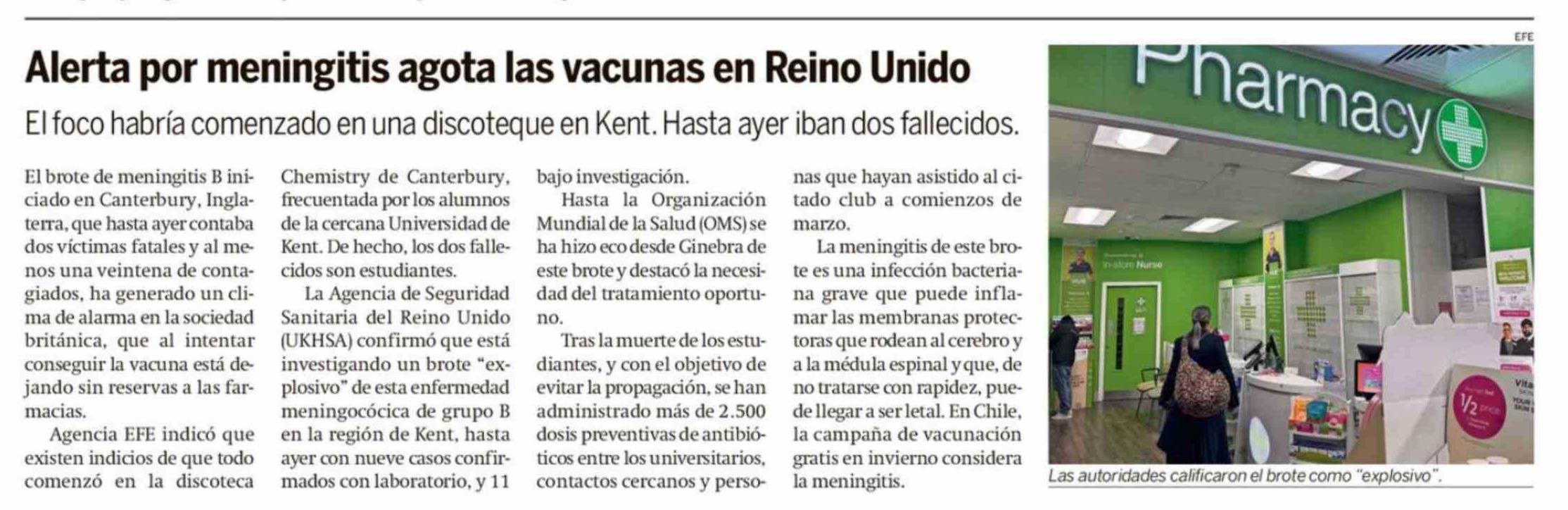 | Título: | Alerta por meningitis agota las vacunas en Reino Unido |