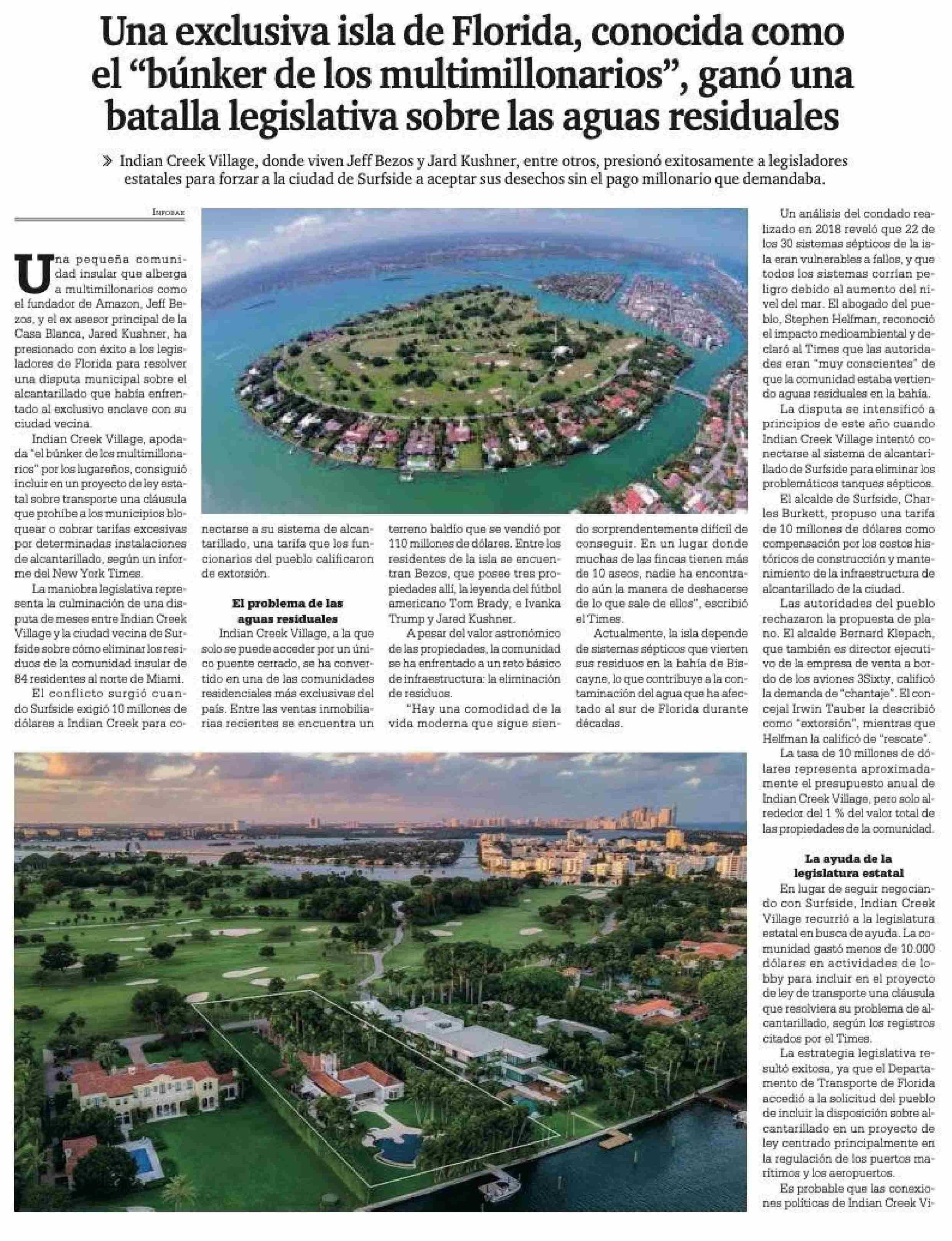 | Título: | Una exclusiva isla de Florida, conocida como el “búnker de los multimillonarios”, ganó una batalla legislativa sobre las aguas residuales |