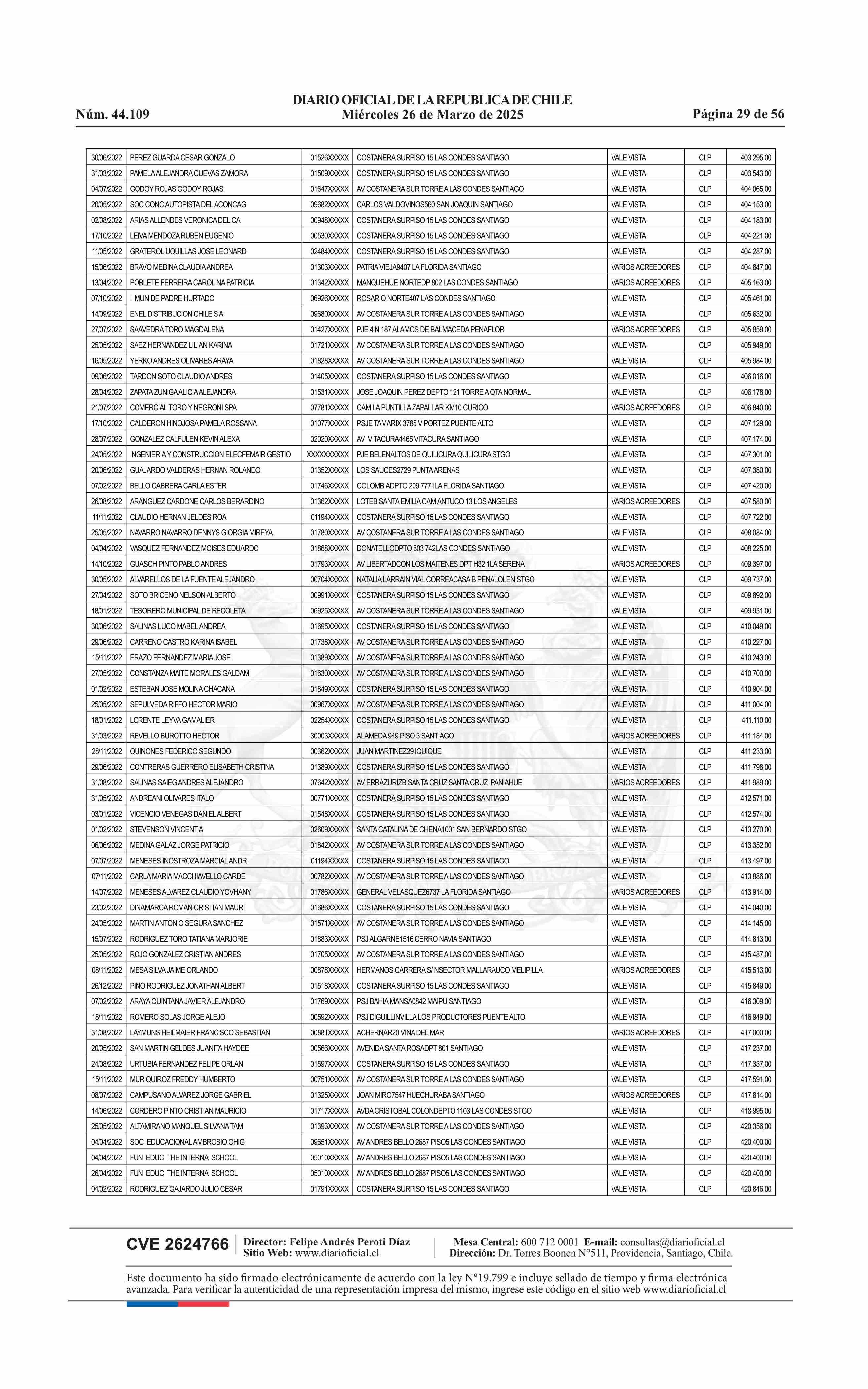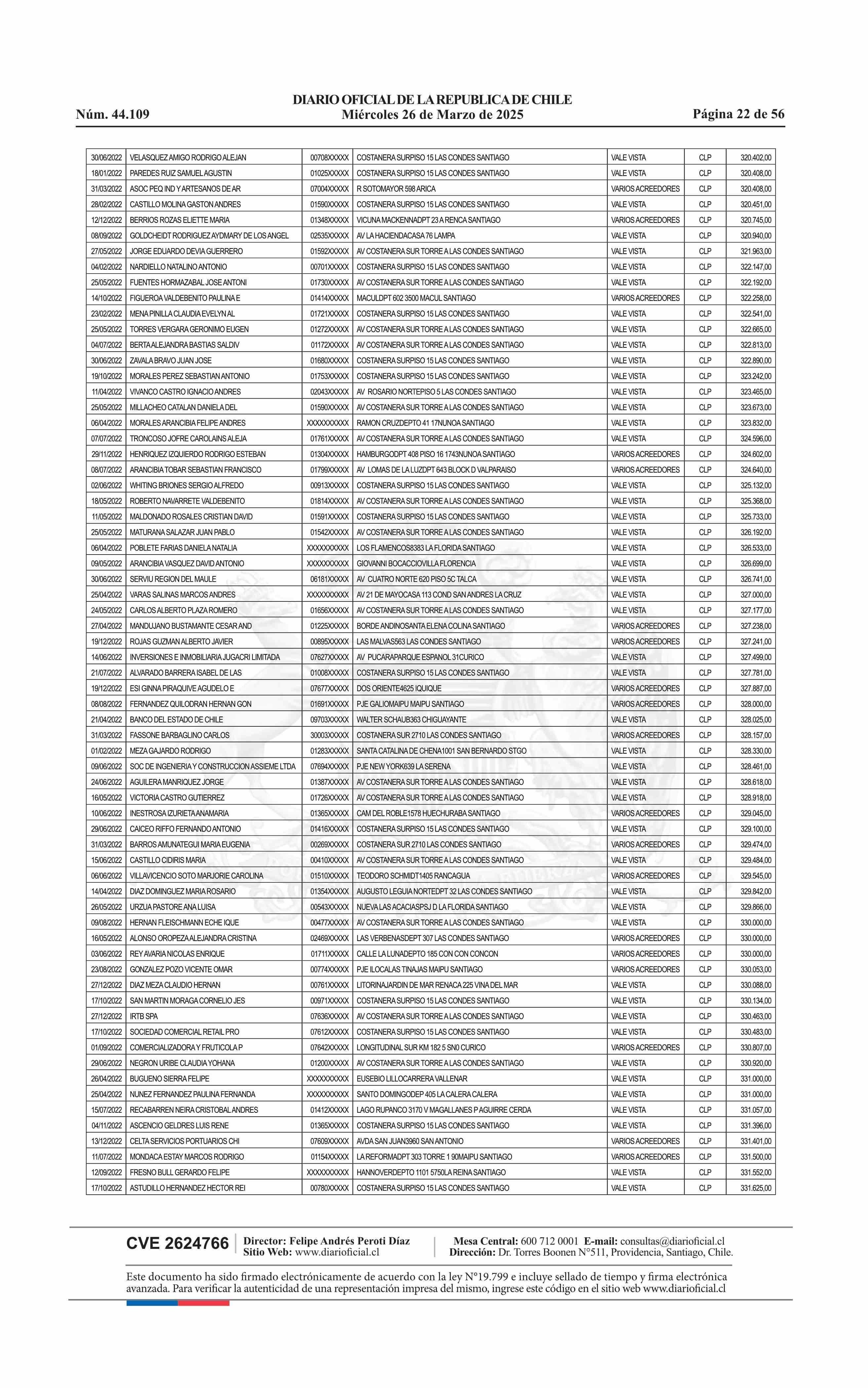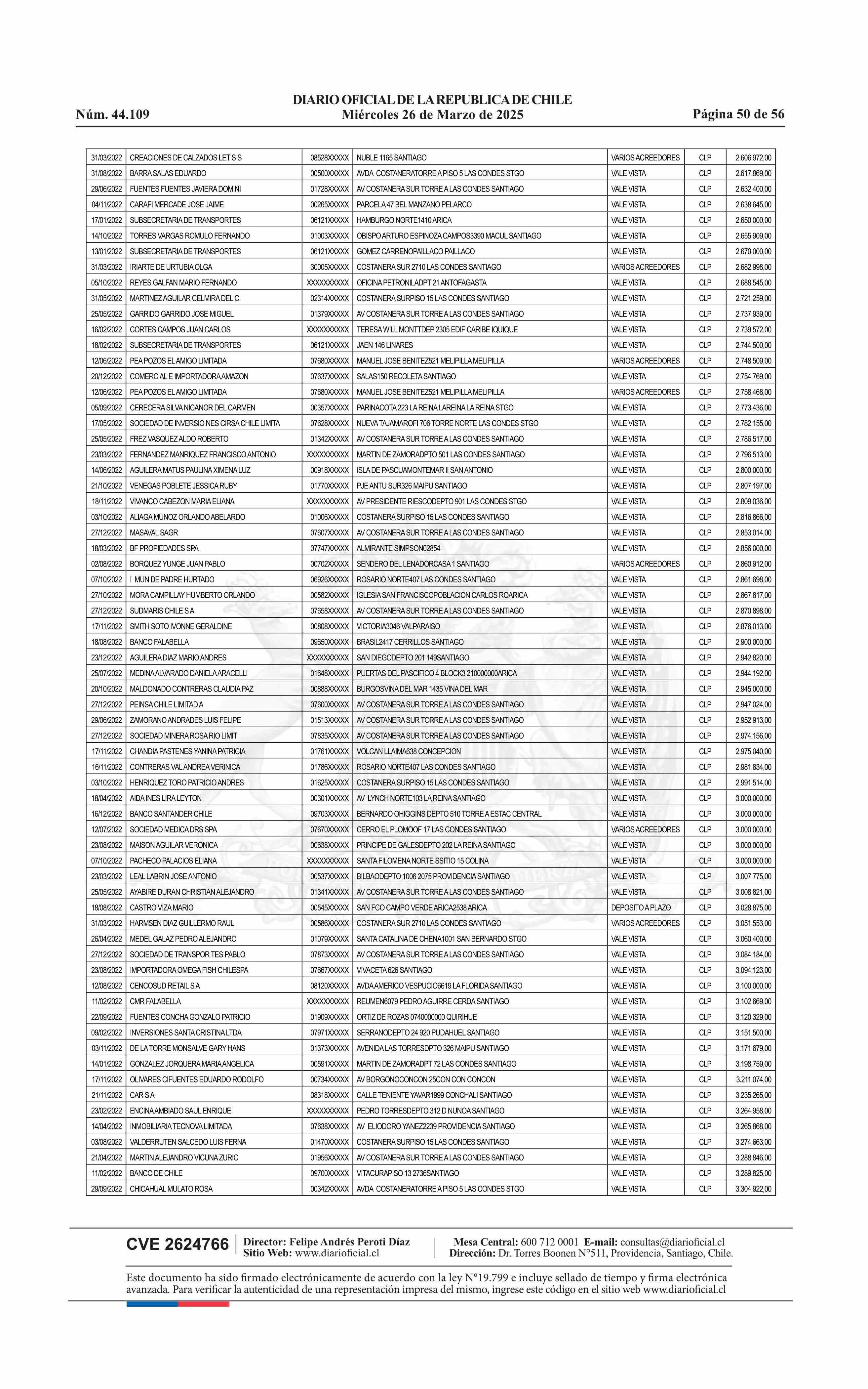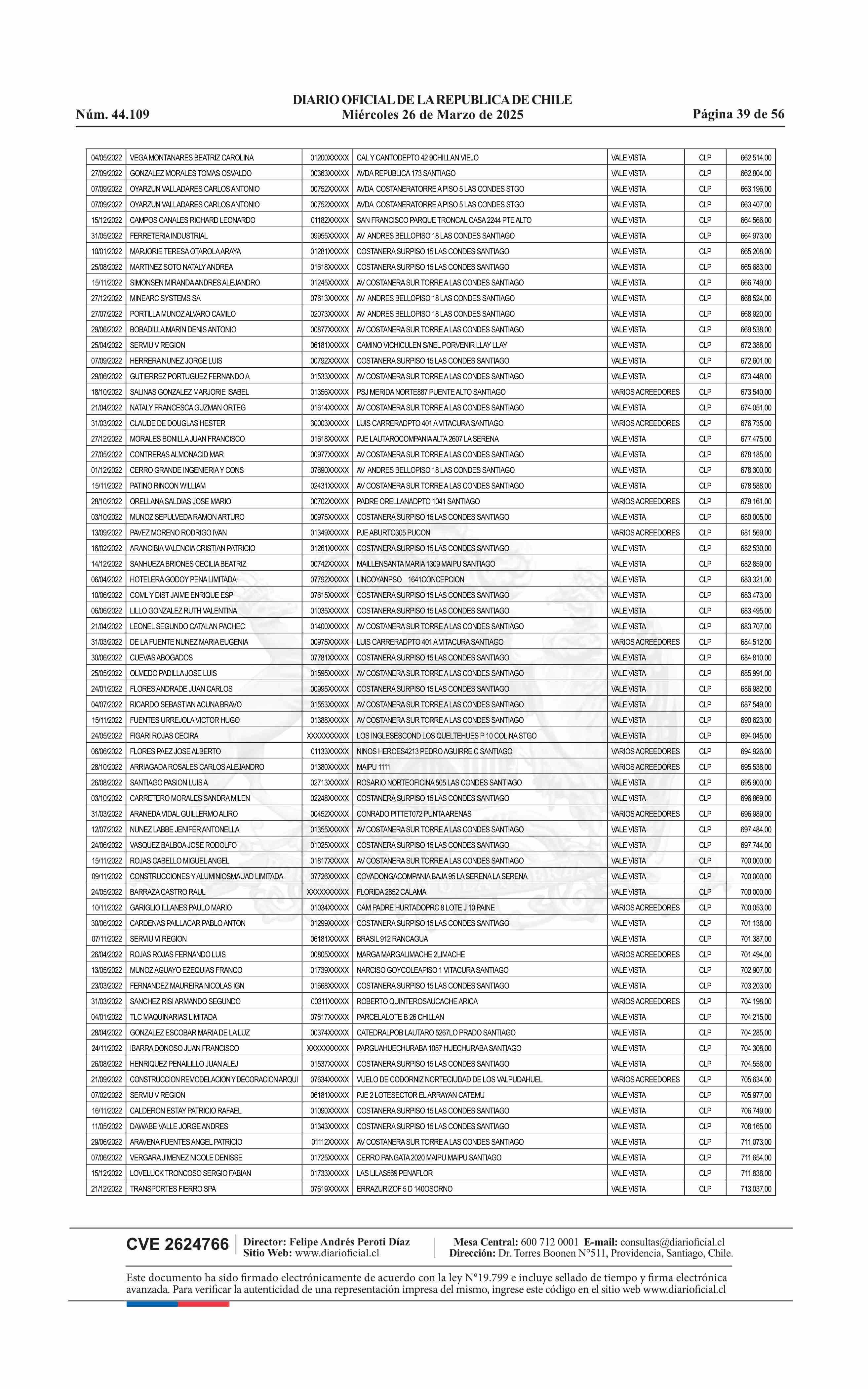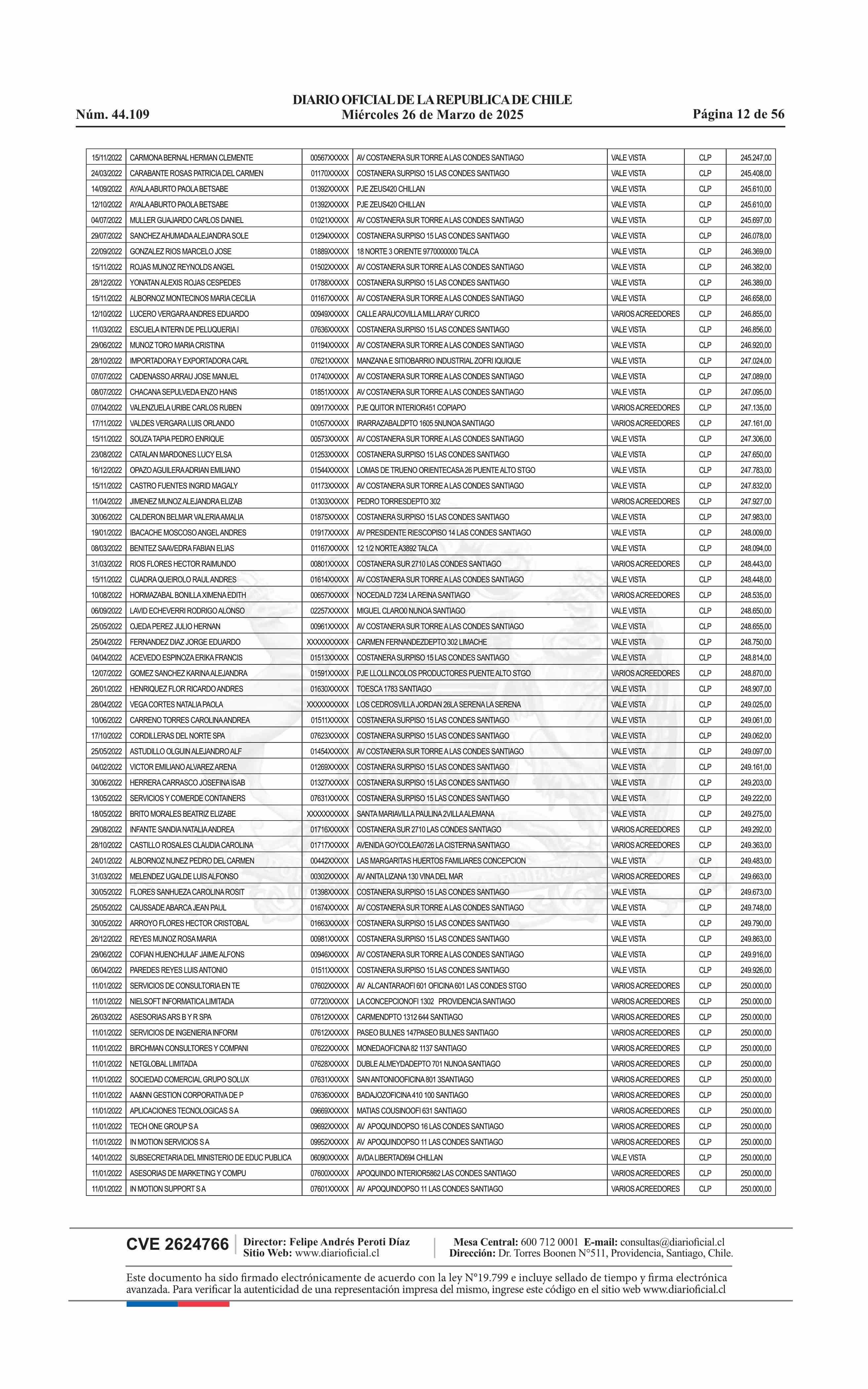 | Fuente: | Diario Oficial Edición Electrónica (Diario Oficial de Chile - 4 Avisos Destacados) | Página(s): | 9-64 |