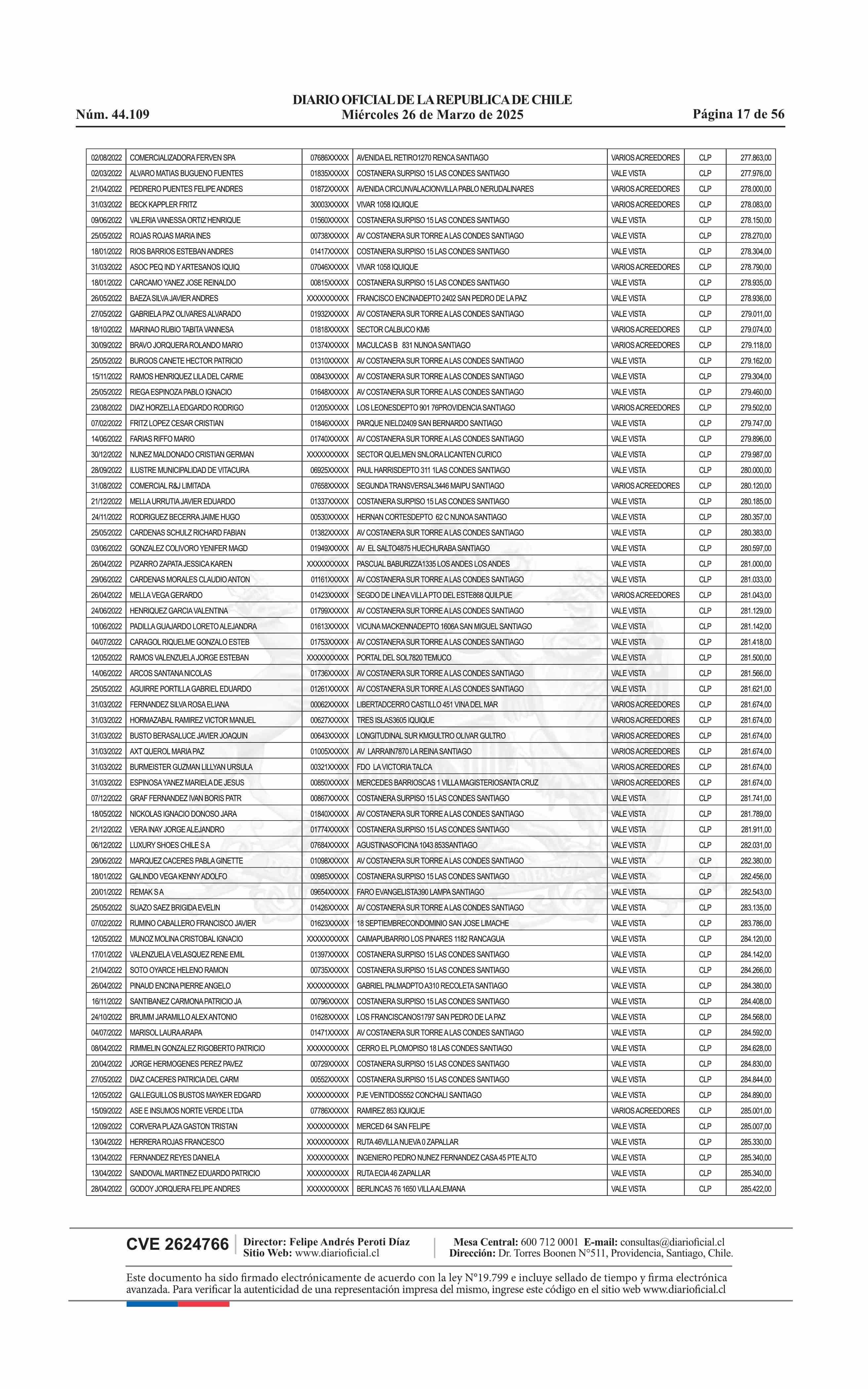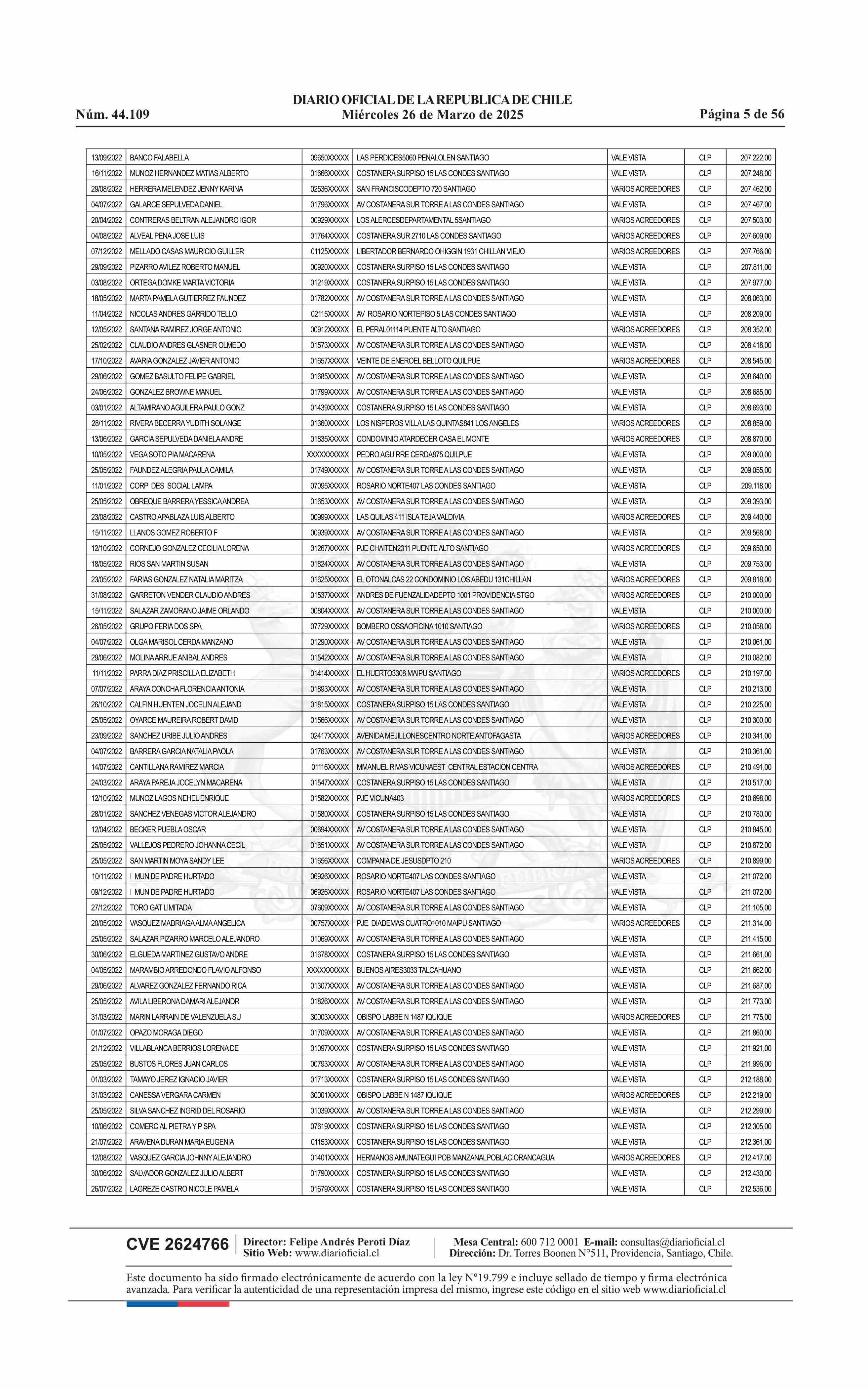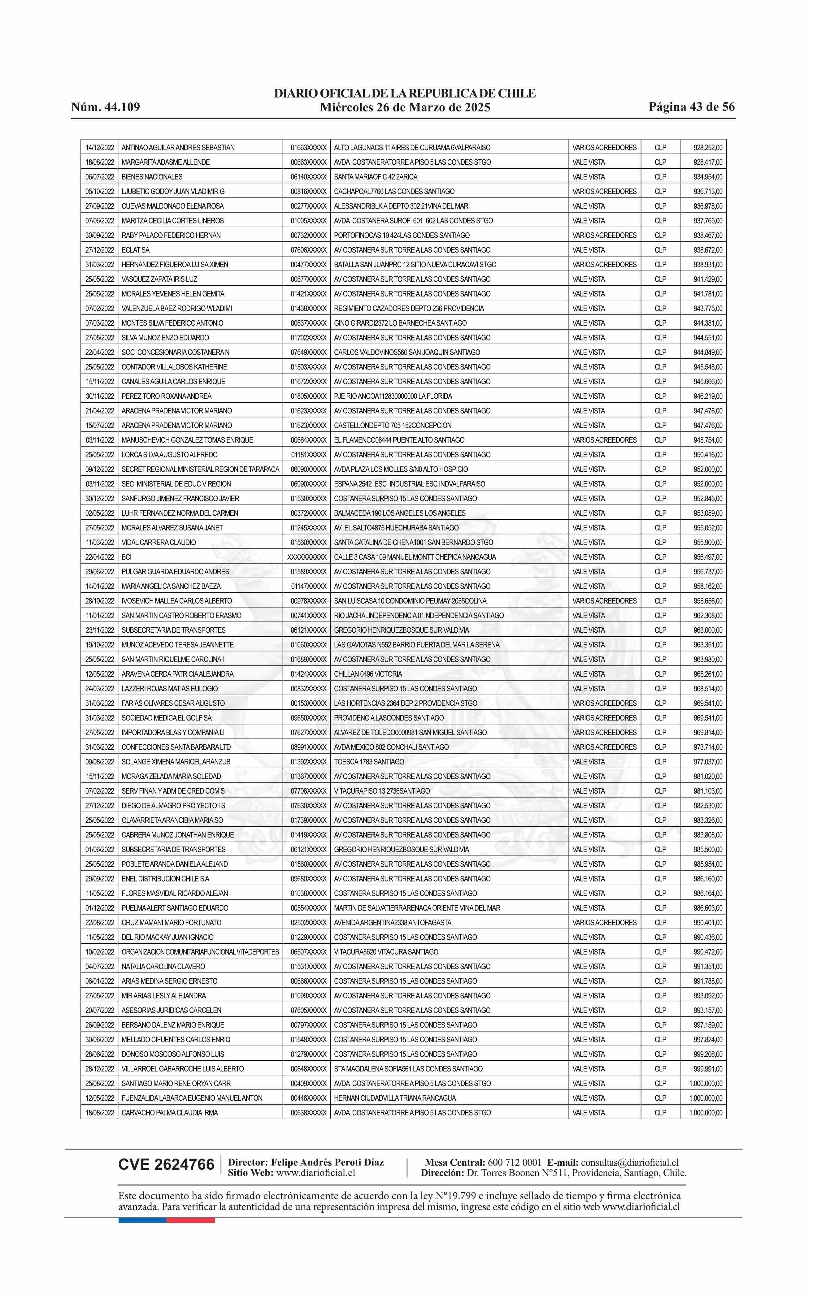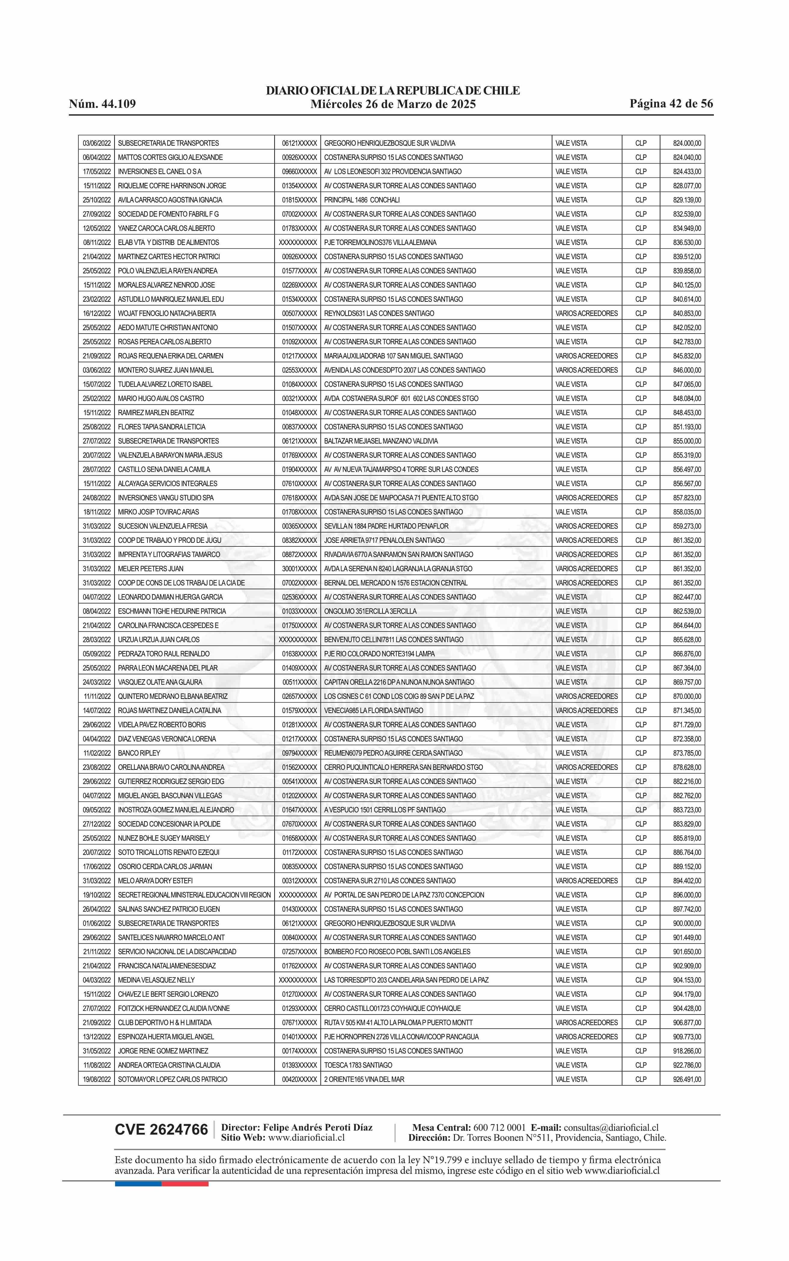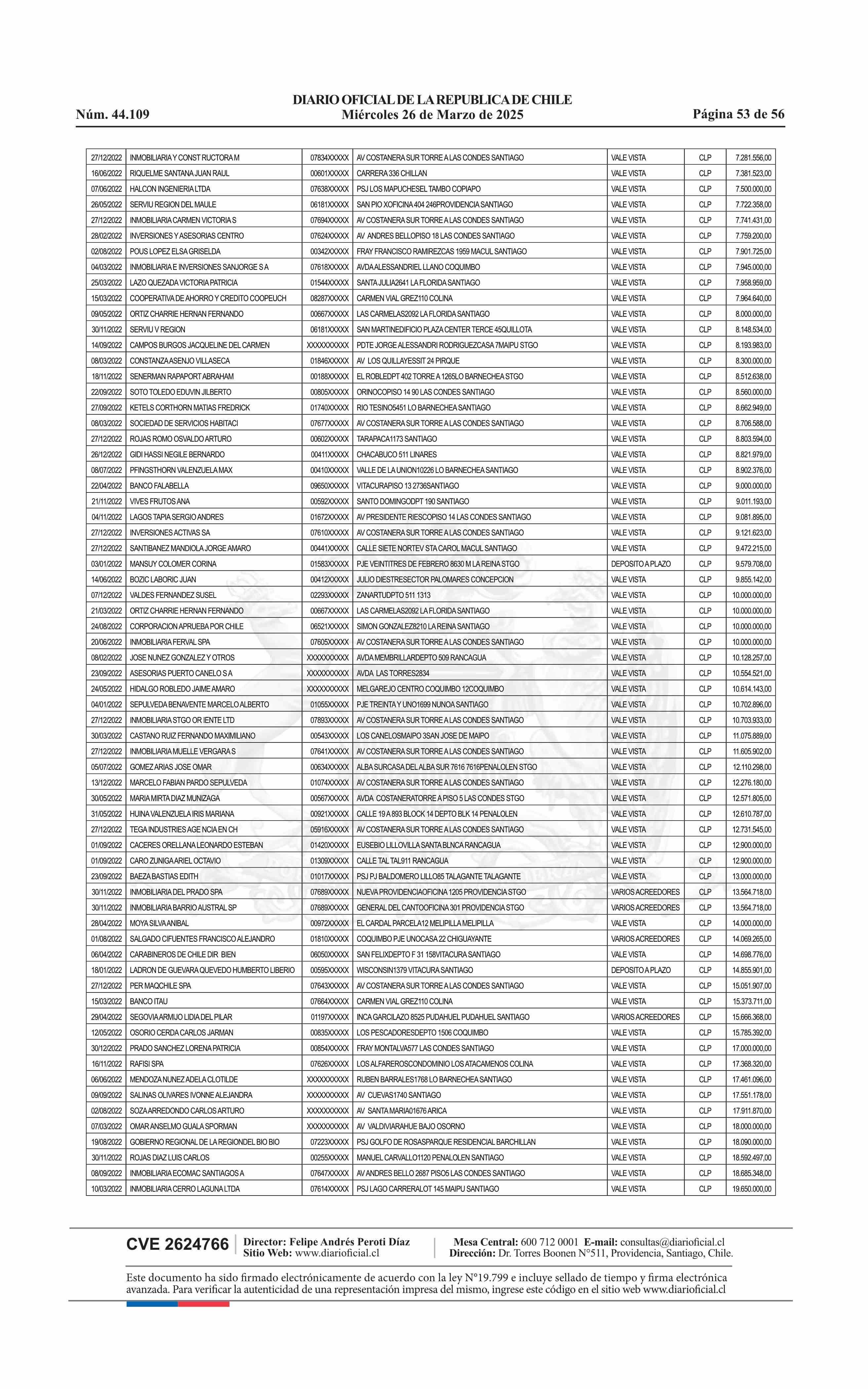 | Fuente: | Diario Oficial Edición Electrónica (Diario Oficial de Chile - 4 Avisos Destacados) | Página(s): | 9-64 |