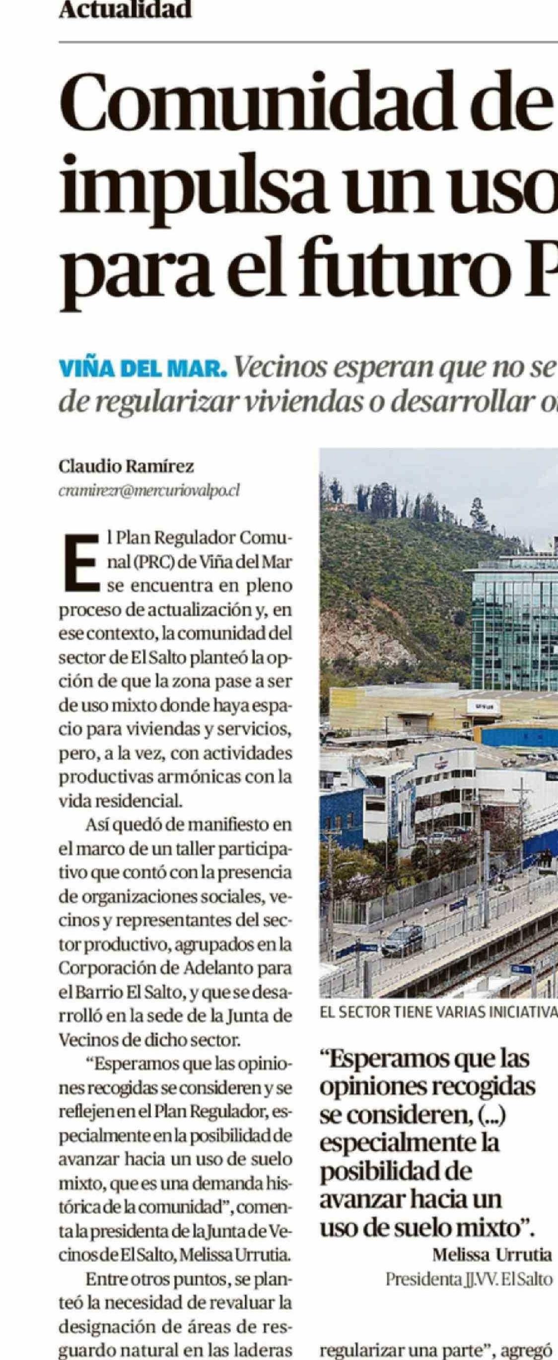 Comunidad de El Salto impulsa un uso mixto para el futuro PRC 02-04-2026 El Mercurio de Valparaíso |