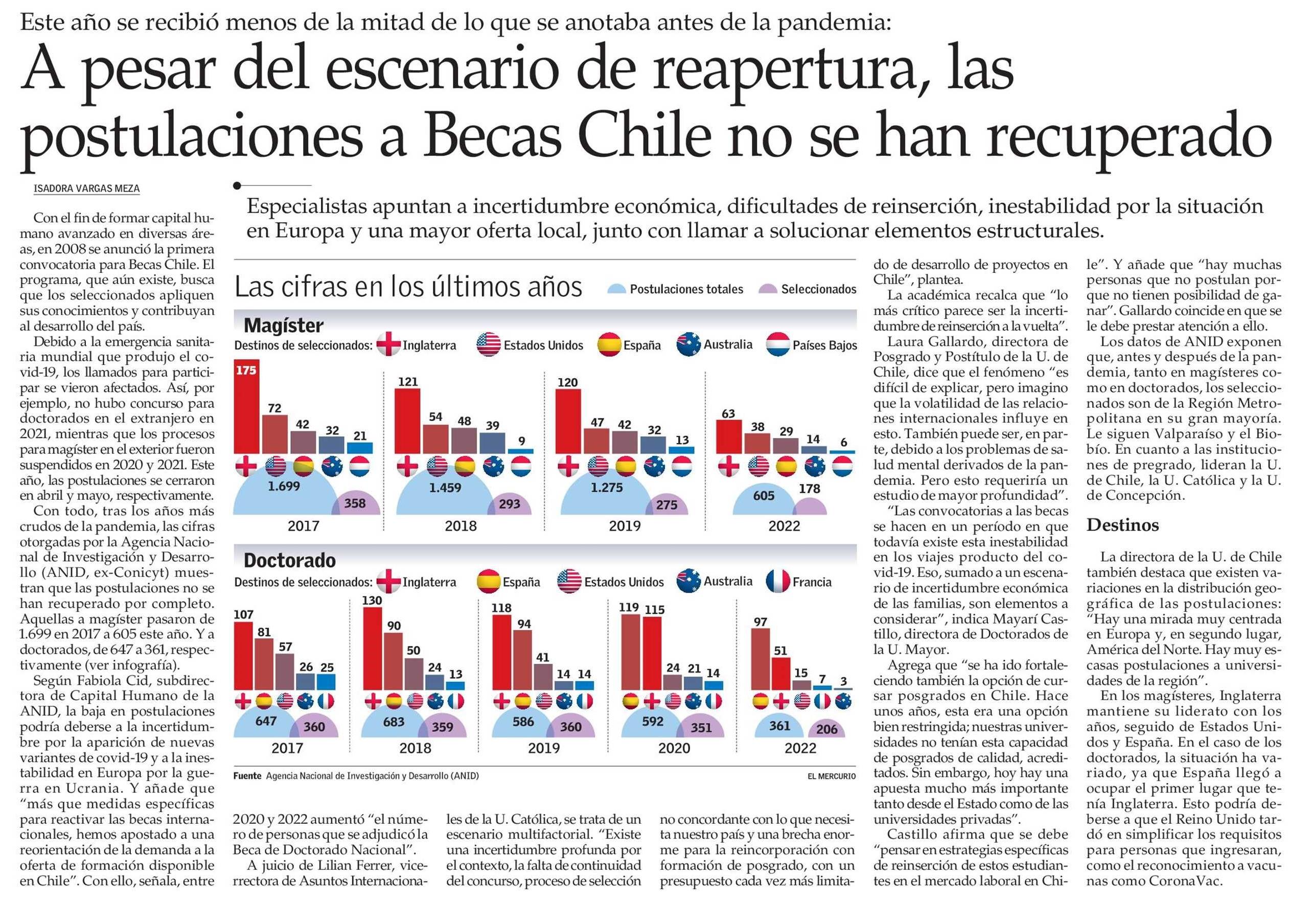 A pesar del escenario de reapertura, las postulaciones a Becas Chile no se han recuperado 05-12-2022 El Mercurio |
