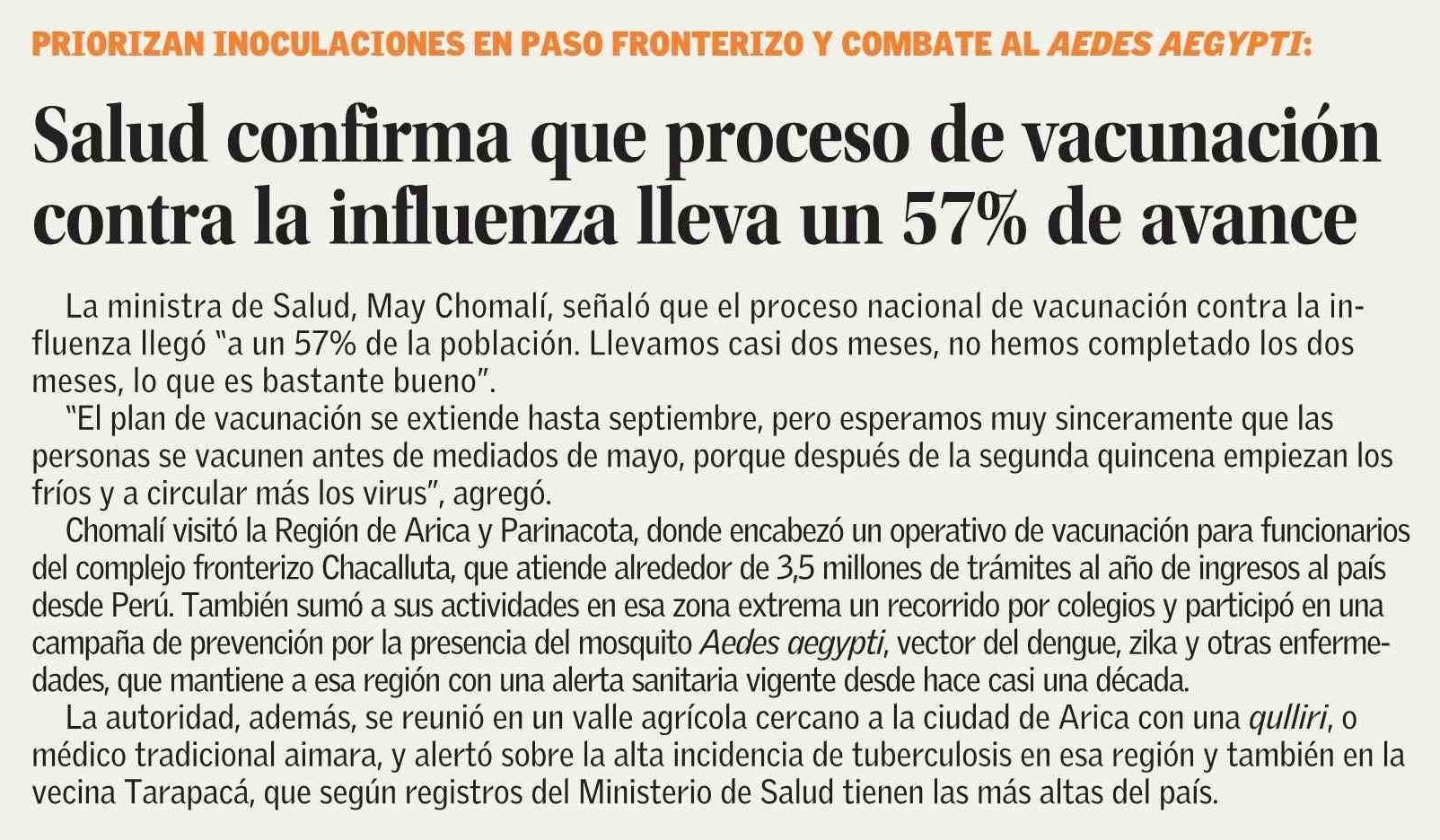 Título: Salud confirma que proceso de vacunación contra la influenza lleva un 57% de avance