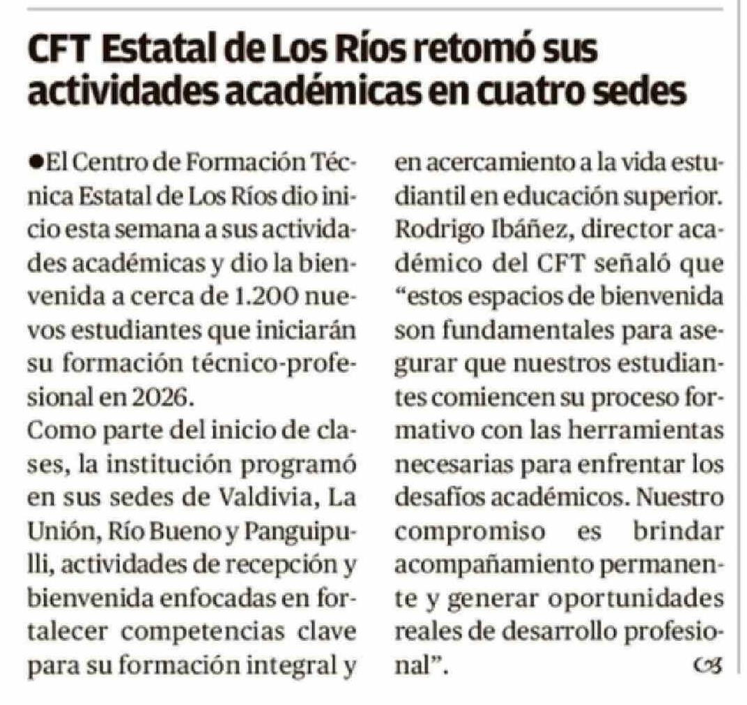 Título: CFT Estatal de Los Ríos retomo sus actividades académicas en cuatro sedes