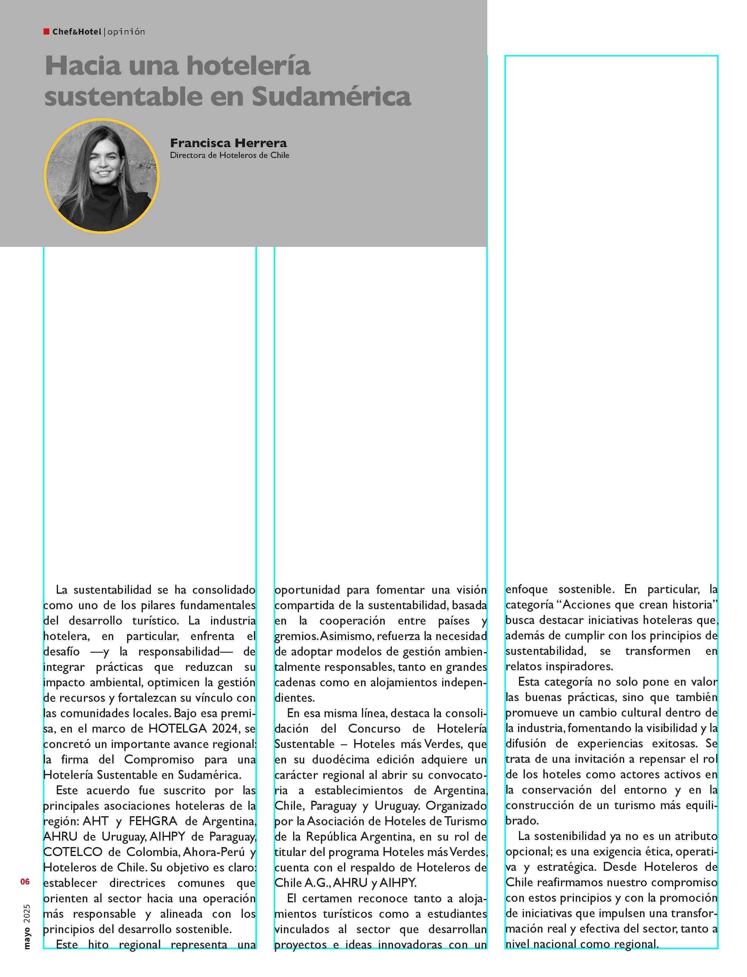 COLUMNAS DE OPINIÓN: Directora de Hoteleros de Chile 31-05-2025 Revista Chef & Hotel |