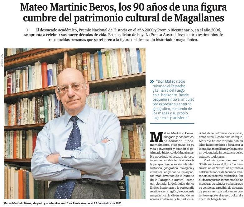 Mateo Martinic Beros, los 90 años de una figura cumbre del patrimonio cultural de Magallanes 18-10-2021 La Prensa Austral |