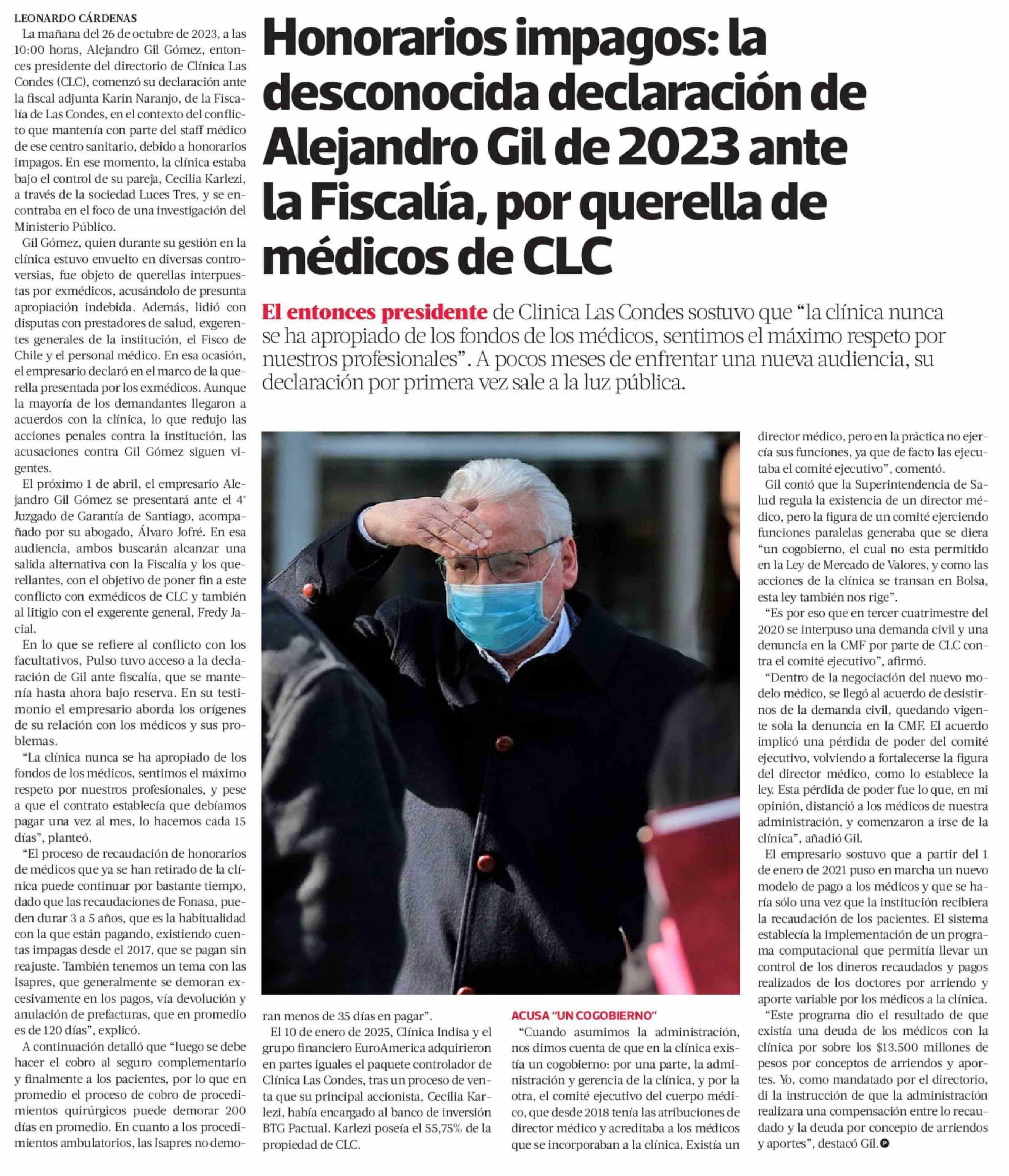 Título: Honorarios impagos: la desconocida declaración de Alejandro Gil de 2023 ante la Fiscalía, por querella de médicos de CLC