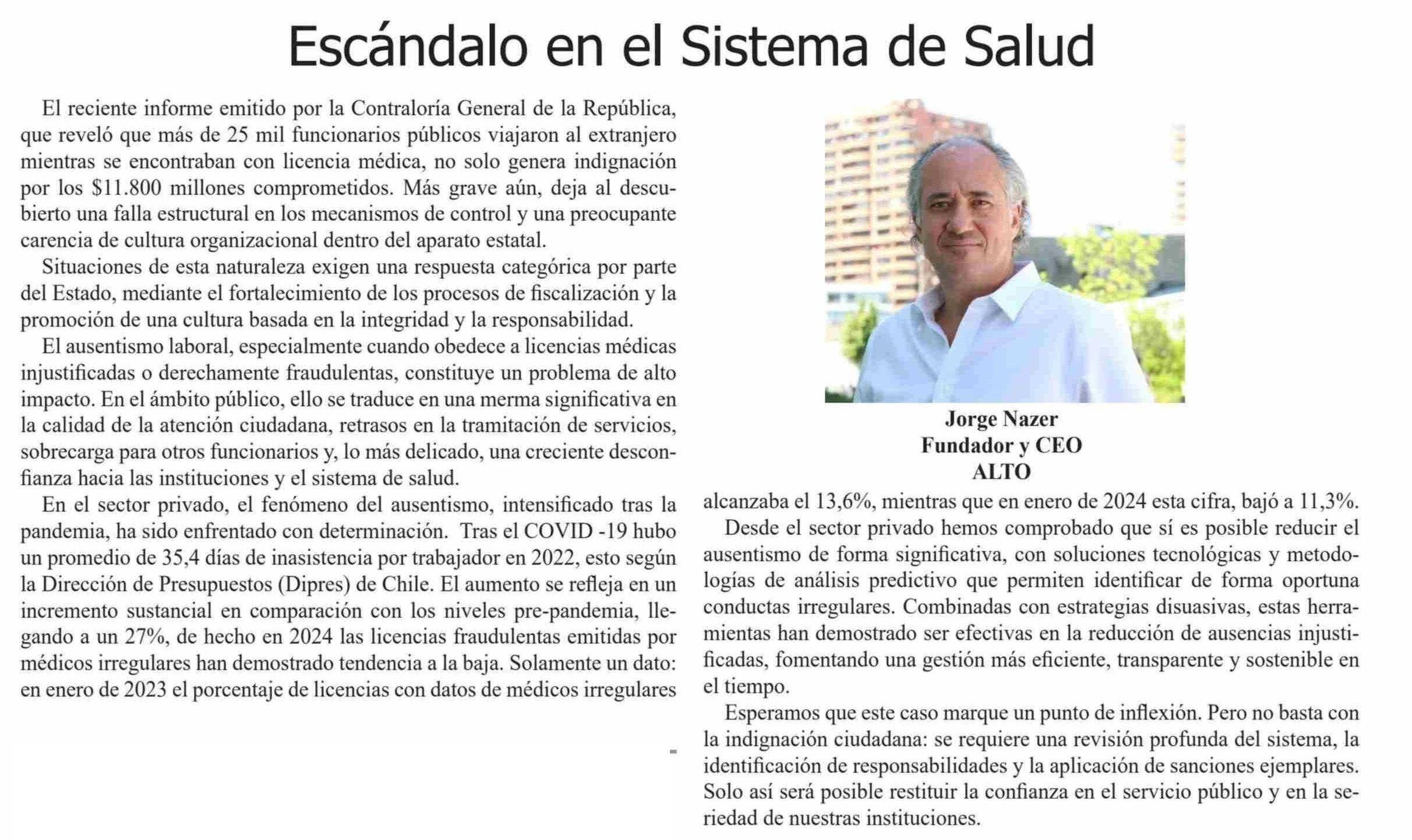 | Título: | COLUMNAS DE OPINIÓN: Escándalo en el Sistema de Salud |