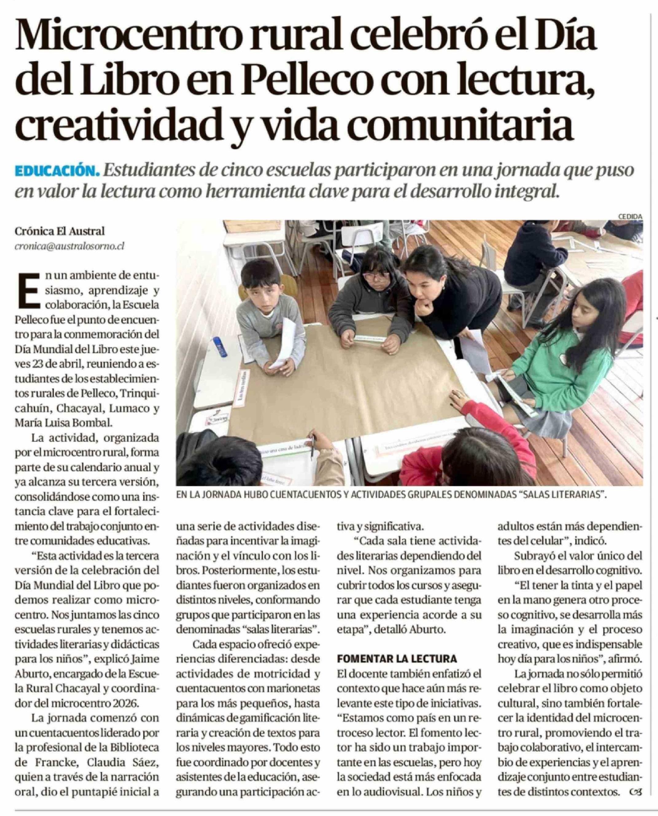 Título: Microcentro rural celebró el Día del Libro en Pelleco con lectura, creatividad y vida comunitaria