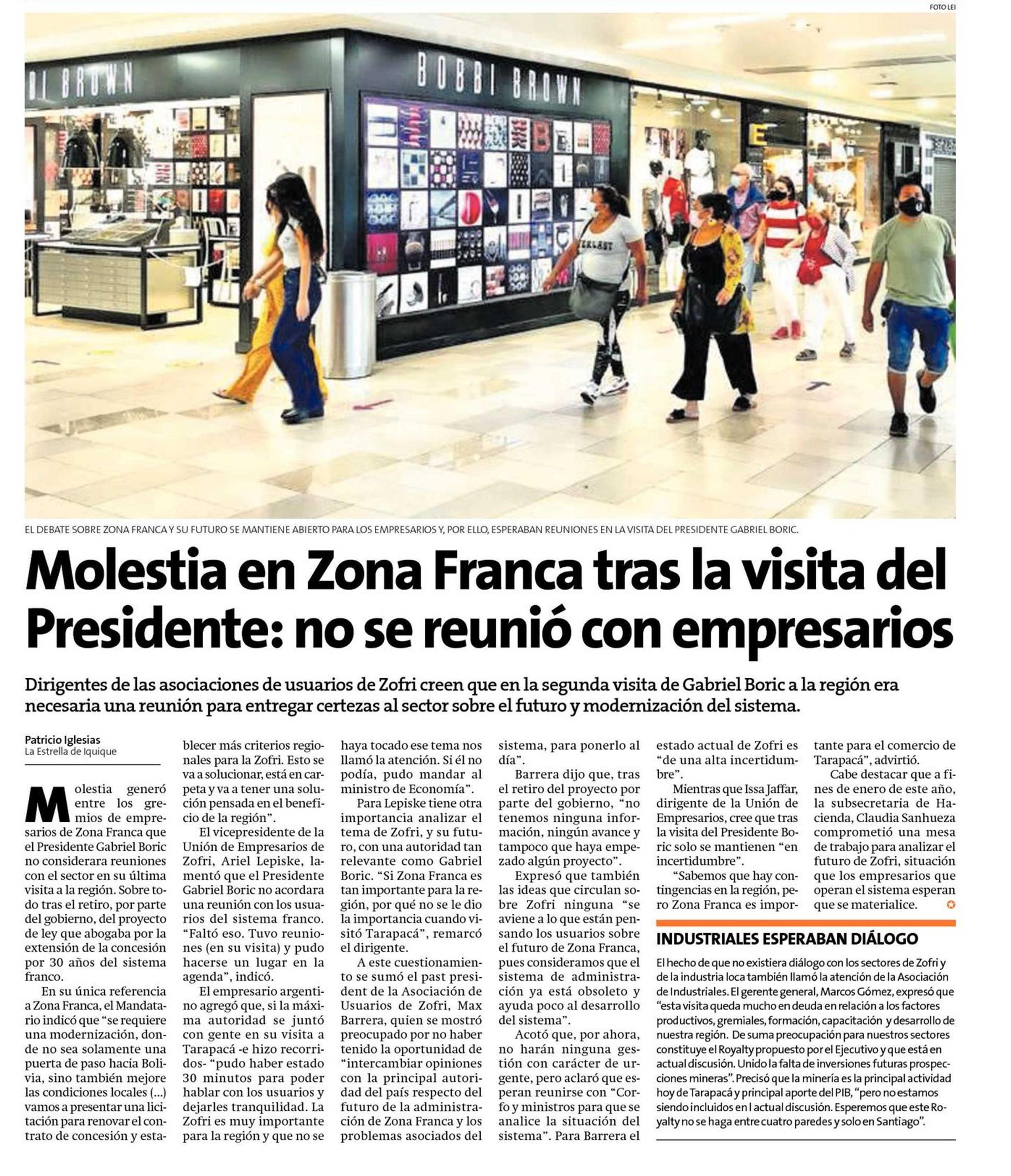 Título: Molestía en Zona Franca tras la visita del Presidente: no se reunió con empresarios