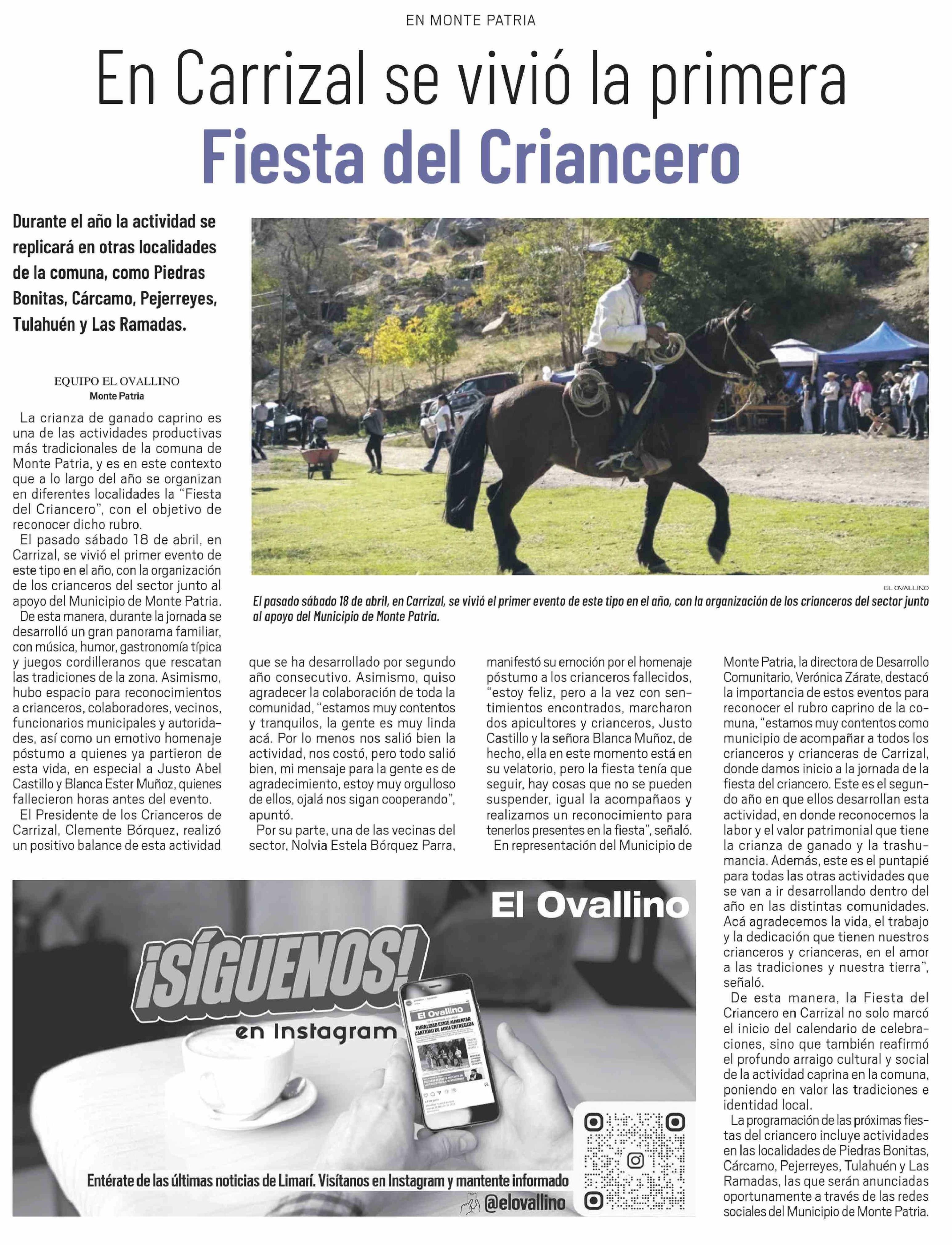 En Carrizal se vivió la primera Fiesta del Criancero 21-04-2026 El Ovallino |